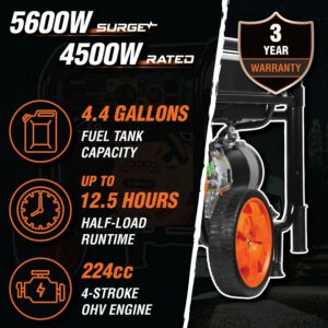 WEN 5,600-Watt Portable Generator with Wheel Kit, 224cc, Transfer-Switch, and RV-Ready (GN5600)