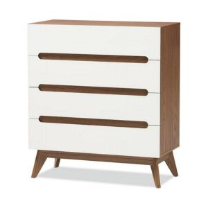Baxton Studio Calypso Mid-Century Modern White and Walnut Wood 4-Drawer Storage Chest