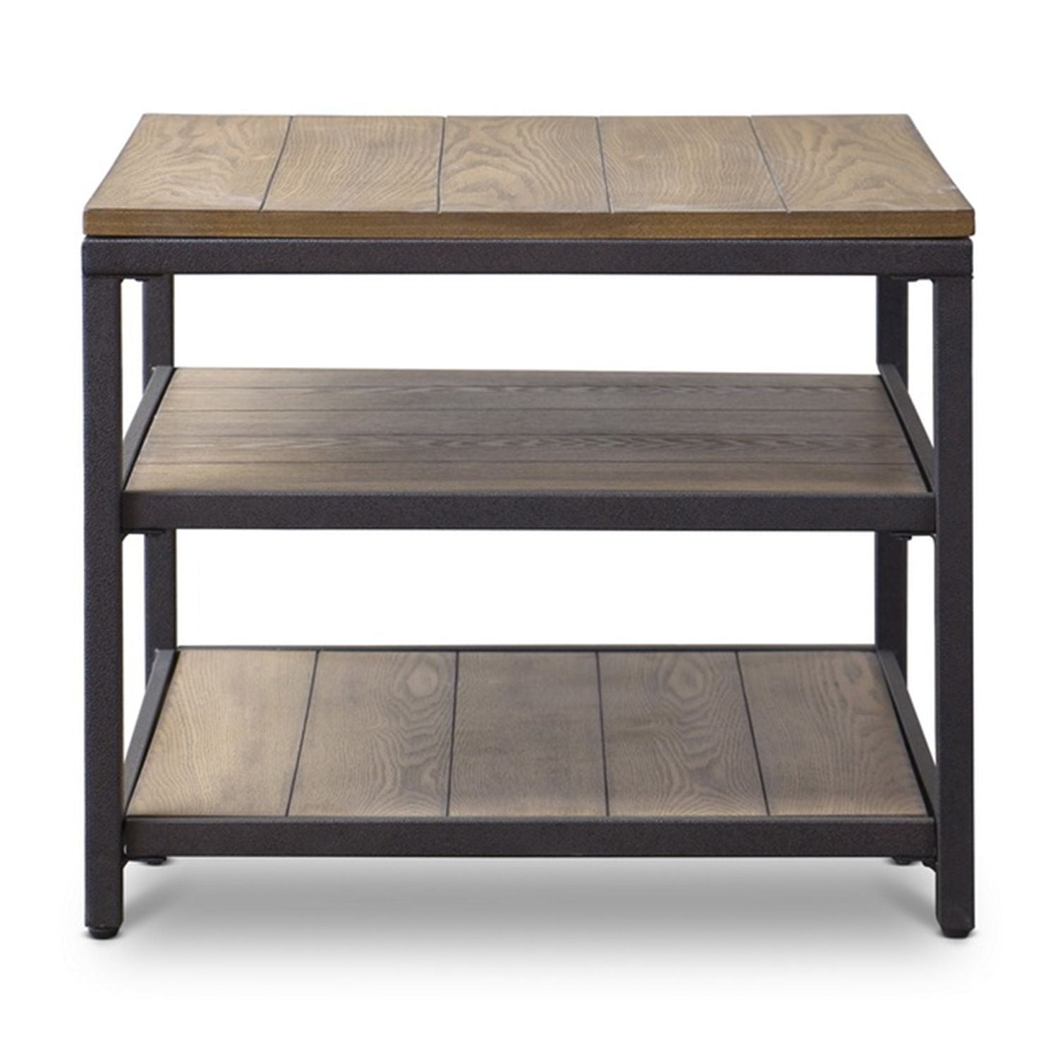 $102.14Rugged construction and attention to visual detail make our Caribou Wood and Metal End Table a standout contemporary furniture item. Distressed ash-veneer wood top and shelf join with rustic iron metal in bronze in an end-table design that’s a fantastic representation of a modern approach that also speaks of timelessness. Contrasting panel and wood-grain directions enhance the eye appeal. Features: Vintage industrial rustic design end table Distressed wood top and shelf with ash veneer Framed in durable rustic iron metal in bronze