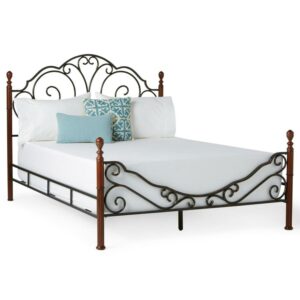 Weston Home Abigail Square Post and Black Metal Adult Platform Queen Bed, Brown