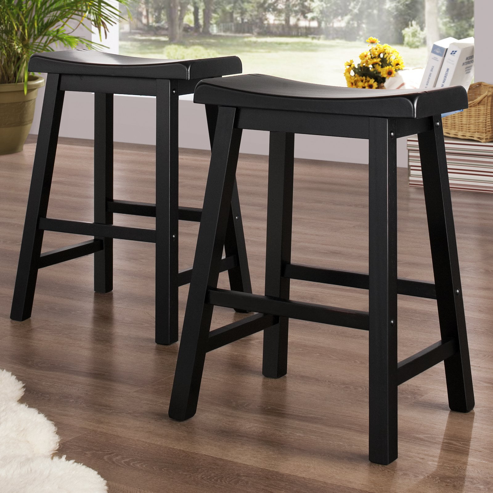 Weston Home 18″H Saddleback Wood Stool, Set of 2, Vulcan Black