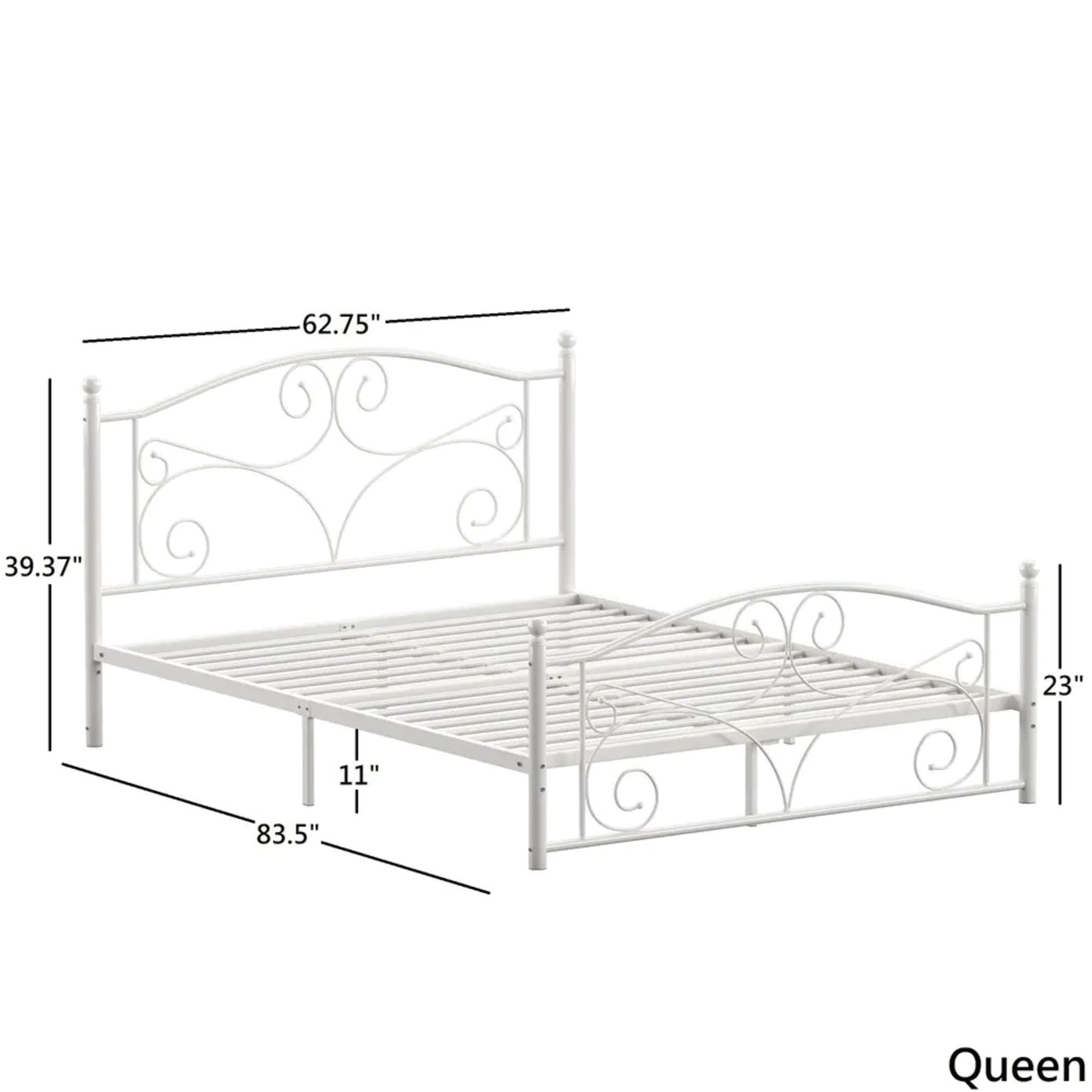 $196.94Weston Home establishes a vintage aesthetic in any bedroom of your home with this White Metal Queen Platform Bed. Elegance radiates from the head and footboards with the gentle curves and sphere finials decorating them. Whether placed in the guest room, master suite, or kid’s room, this beautiful bed is constructed from metal to provide long-lasting support and durability for a good night’s rest. This charming bed comes in a snowy white finish, making for easy matching with a variety of color schemes and design styles.