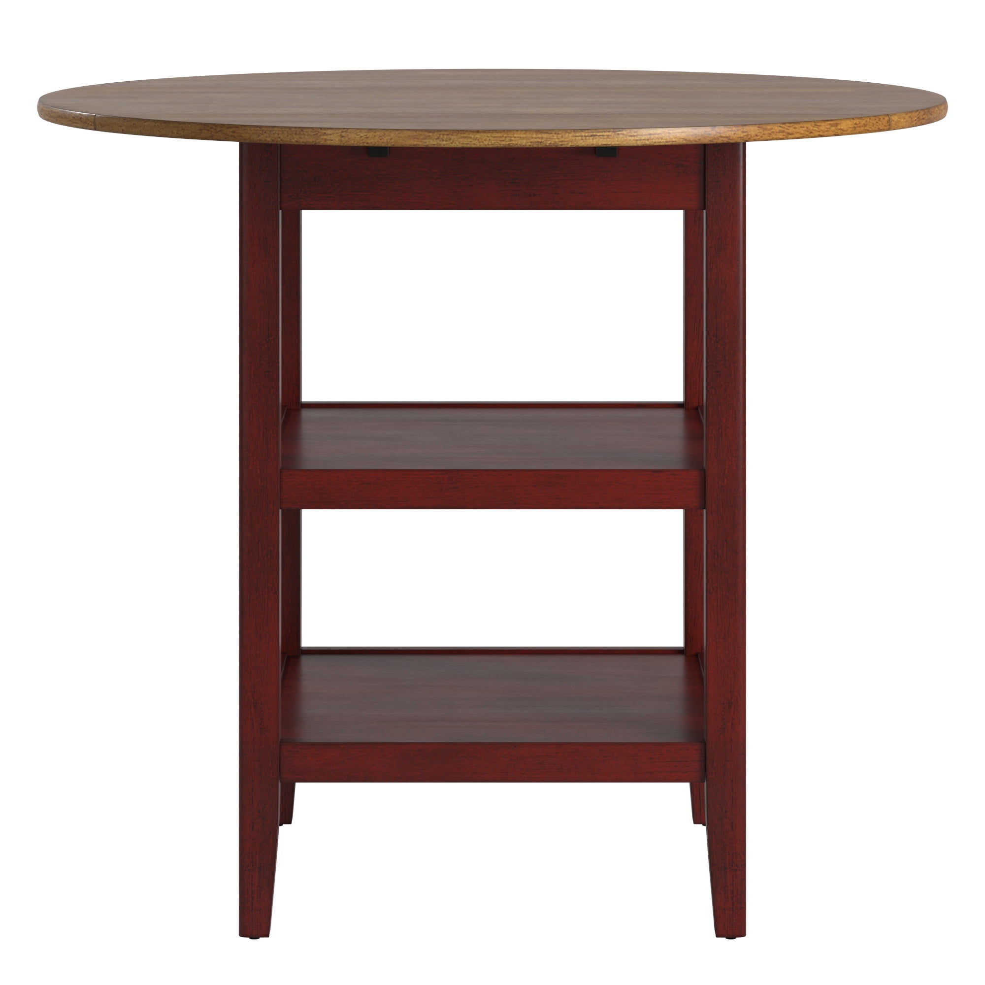 Weston Home Alita Oak Top Round 2-Drop Leaf Counter Height Table, Antique Berry