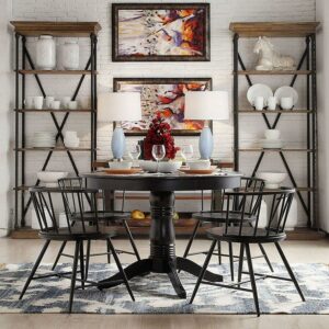 Weston Home Chelsea High Back Metal and Wood Dining Chair, Set of 2, Black
