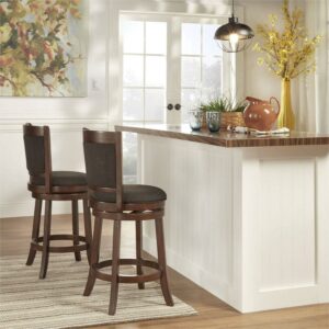 $93.37This stool is a great addition to any dining or bar area. Built with a solid wood frame and finished with rich upholstery, this stool is as durable as it is comfortable. There is also a built in ring footrest to ensure support while you are enjoying a meal or hosting a gathering. With its classic design this stool is sure to go with any room setting.