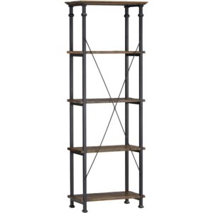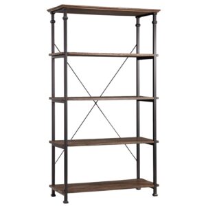 Weston Home Clayton 5 Shelf Wide Wood and Metal Bookcase, Dark Brown Shelves