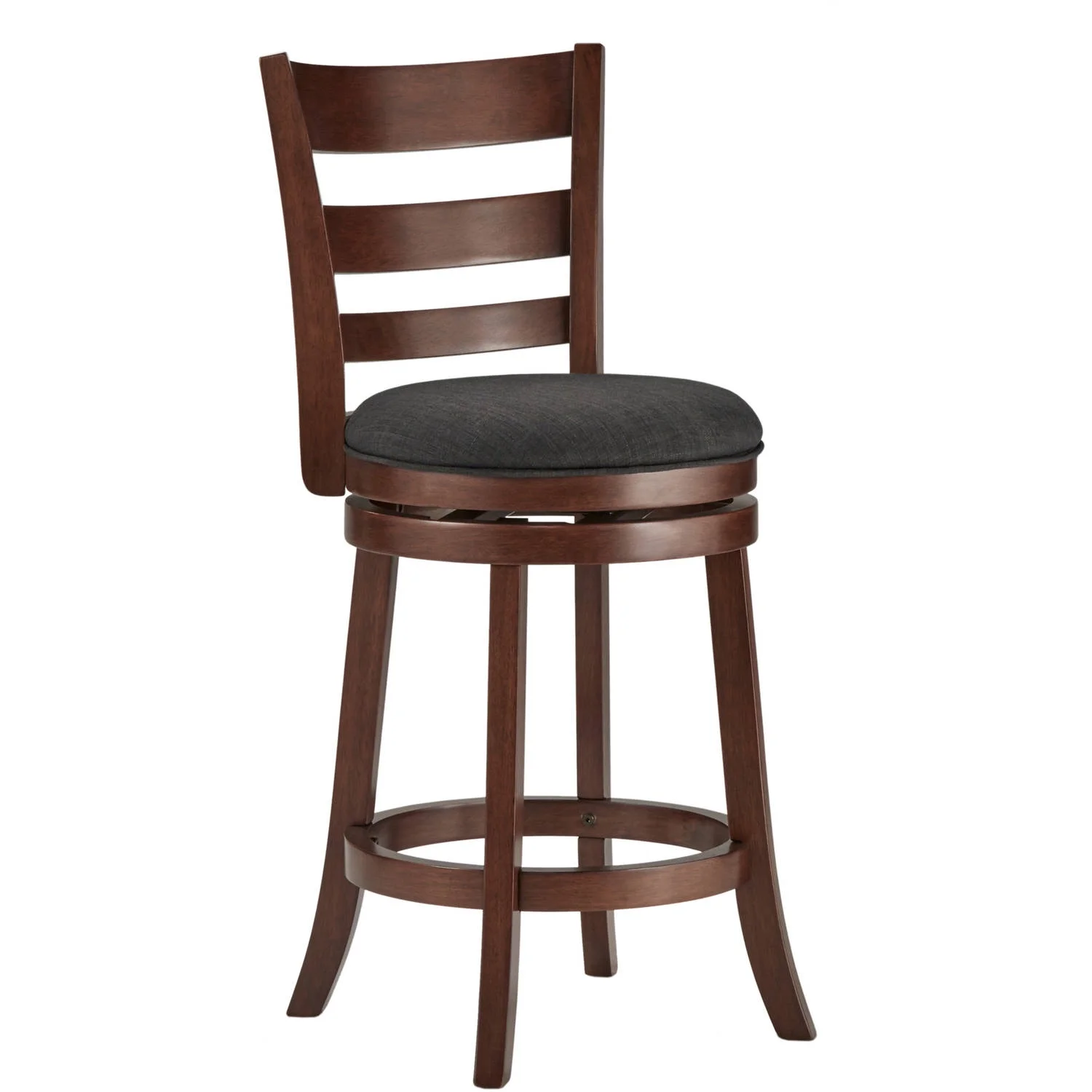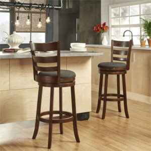 Weston Home Dark Cherry Ladder Back Swivel Counter Height Stool, Dark Grey Linen