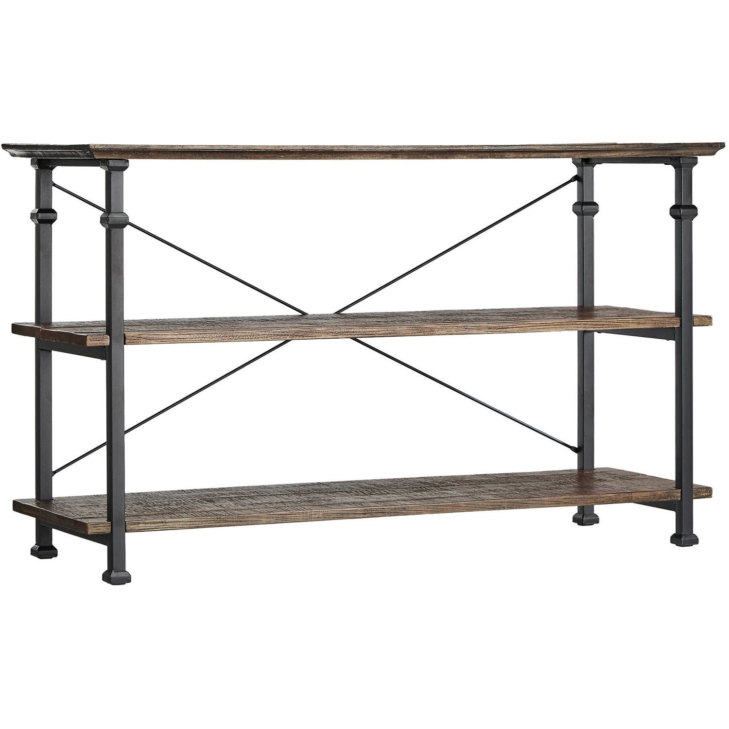 $215.93This Weston Home rustic elegant, detailed leg storage sofa table TV stand, combines non-corrosive sturdy metal and weathered wood to bring your living space a unique, vintage-industrial look that complements most decors. This 48″ TV stand has three large, open shelves. You can use it to hold your home theater, DVD player, cable box, gaming equipment, CDs, DVDs, games, and accessories. The versatile design also makes it suitable as a stand alone shelving unit ideal for displaying collectibles, photos, books, artwork, plants, and more.