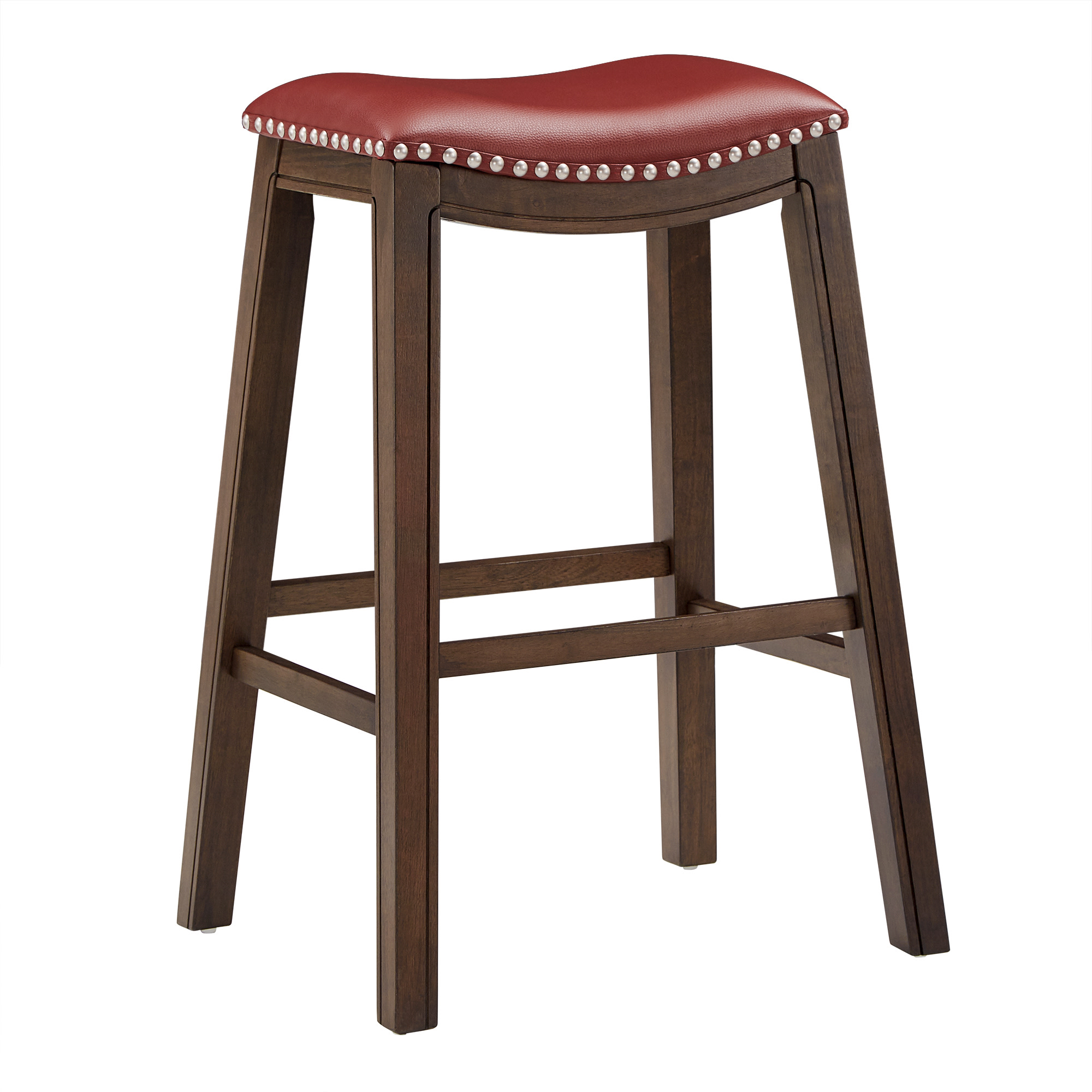 Weston Home Leighton Faux Leather Saddle Seat Backless Bar Height Stool, Red/Brown Finish