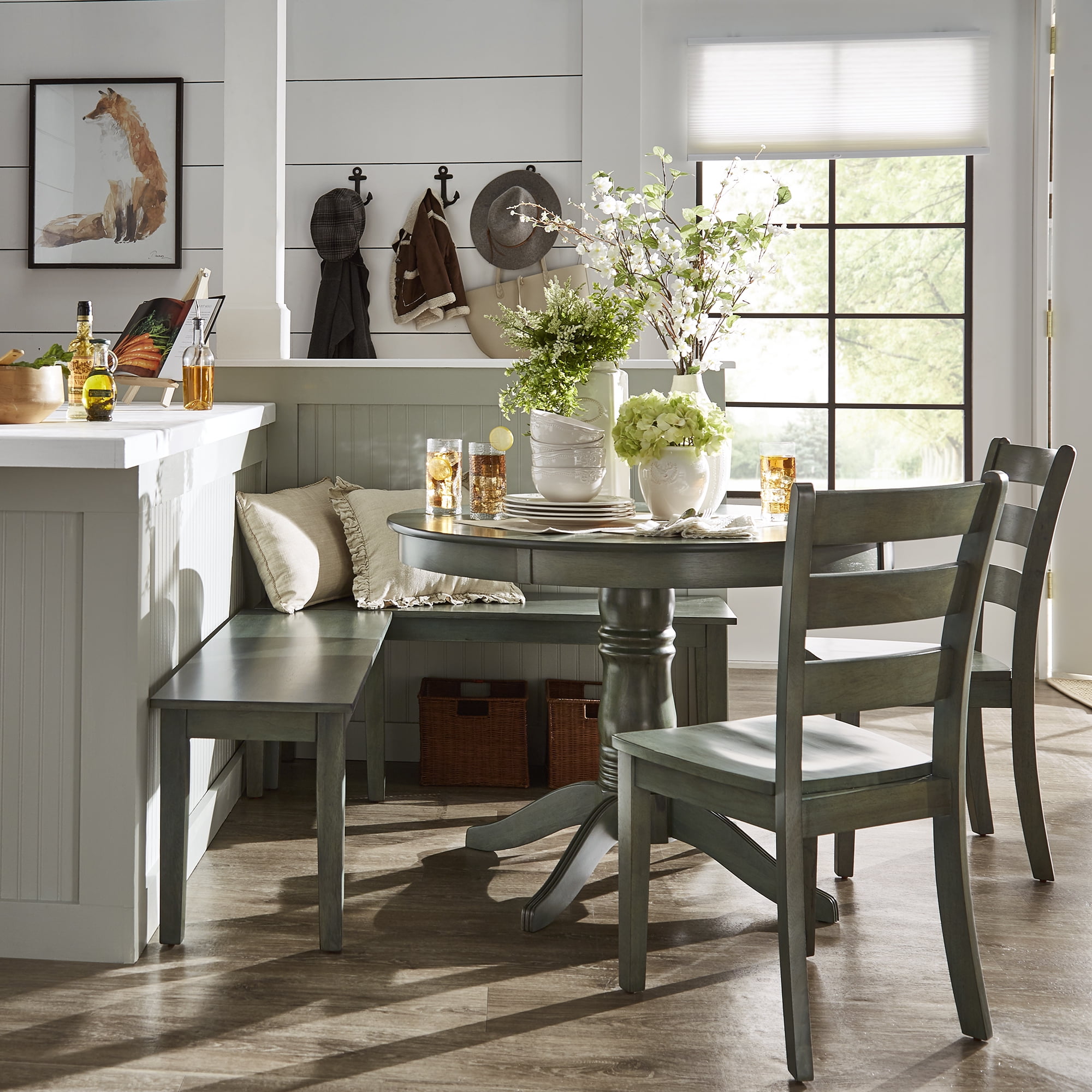 $424.03Turn your small space into an inviting dining area with the Lexington 5-Piece Breakfast Nook Set with Round Table. Set the nook up against a wall or corner, to create a beautiful farmhouse style destination for family and friends to enjoy many happy meals together. The set includes one (1) 42-inch diameter pedestal table, two (2) benches and two (2) ladder back dining chairs.