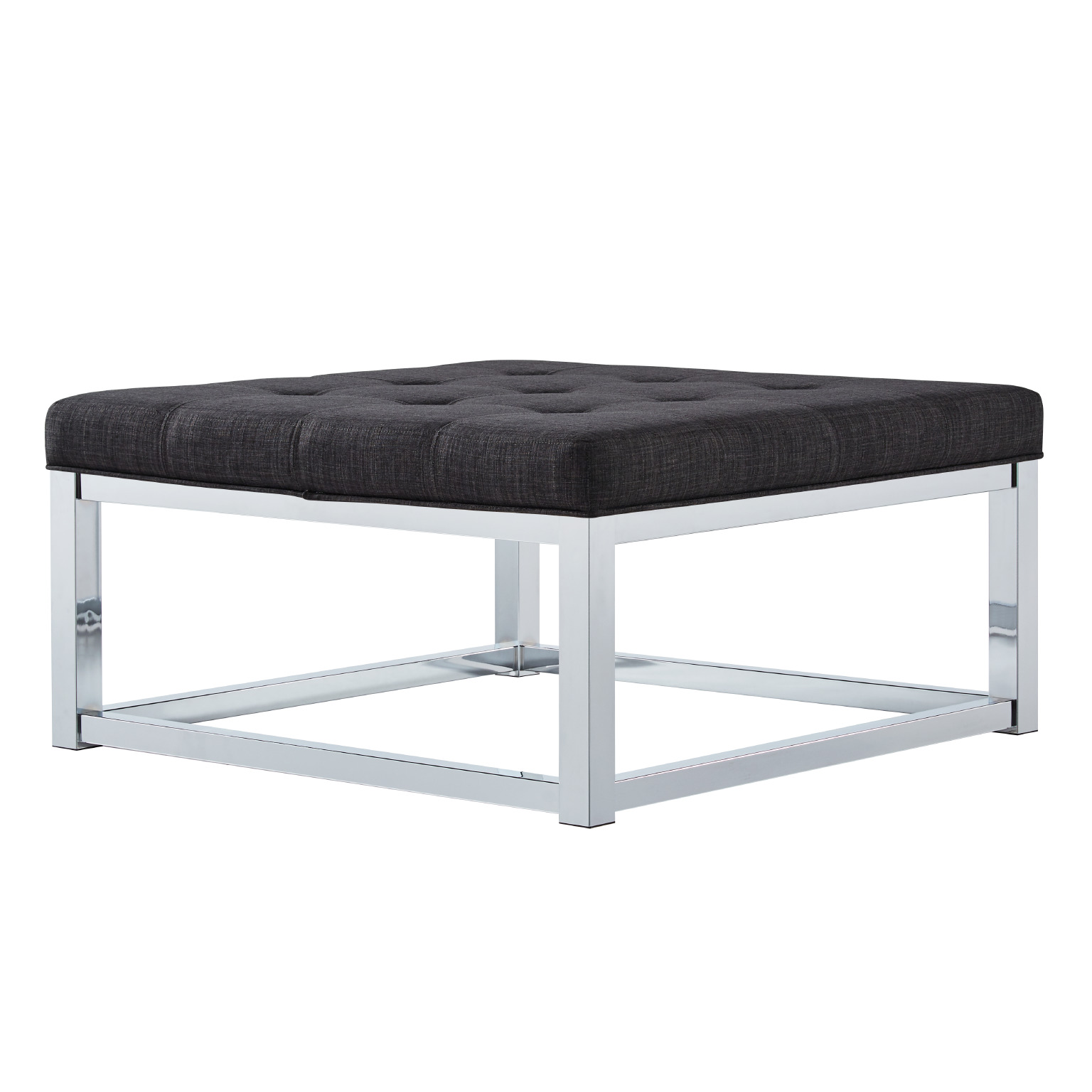 Weston Home Libby Dimpled Tufted Cushion Ottoman Coffee Table with Chrome Metal Straight Base, Dark Grey Linen