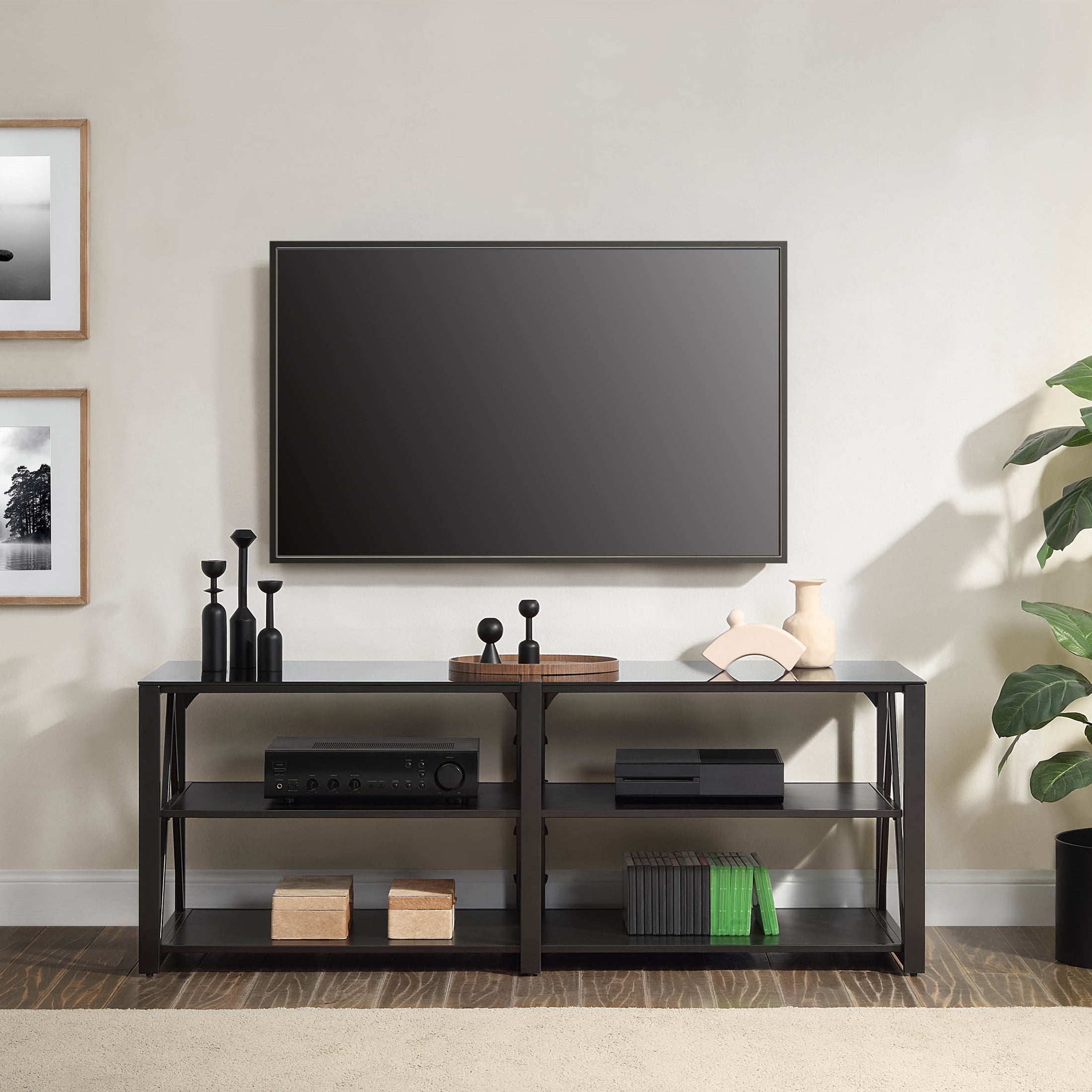 Whalen Black TV Stand for 60″ Flat Panel TVs with Tempered Glass Shelves