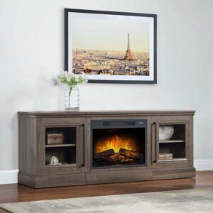 Whalen Furniture Quantum Flame Media Fireplace TV Stand for TV’s up to 75”, Walnut Brown Finish