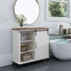 White Buffet Cabinet with Sliding Barn Door, Accent Storage Cabinet with Metal Legs for Dining Room