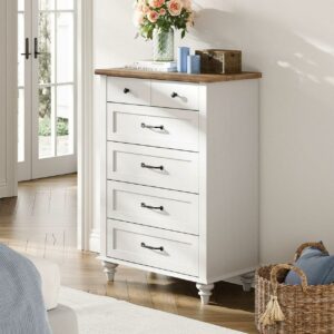 White Dresser for Bedroom, Wood Dresser with 6 Drawers, Kids Dresser Storage Cabinet for Living Room, Hallway
