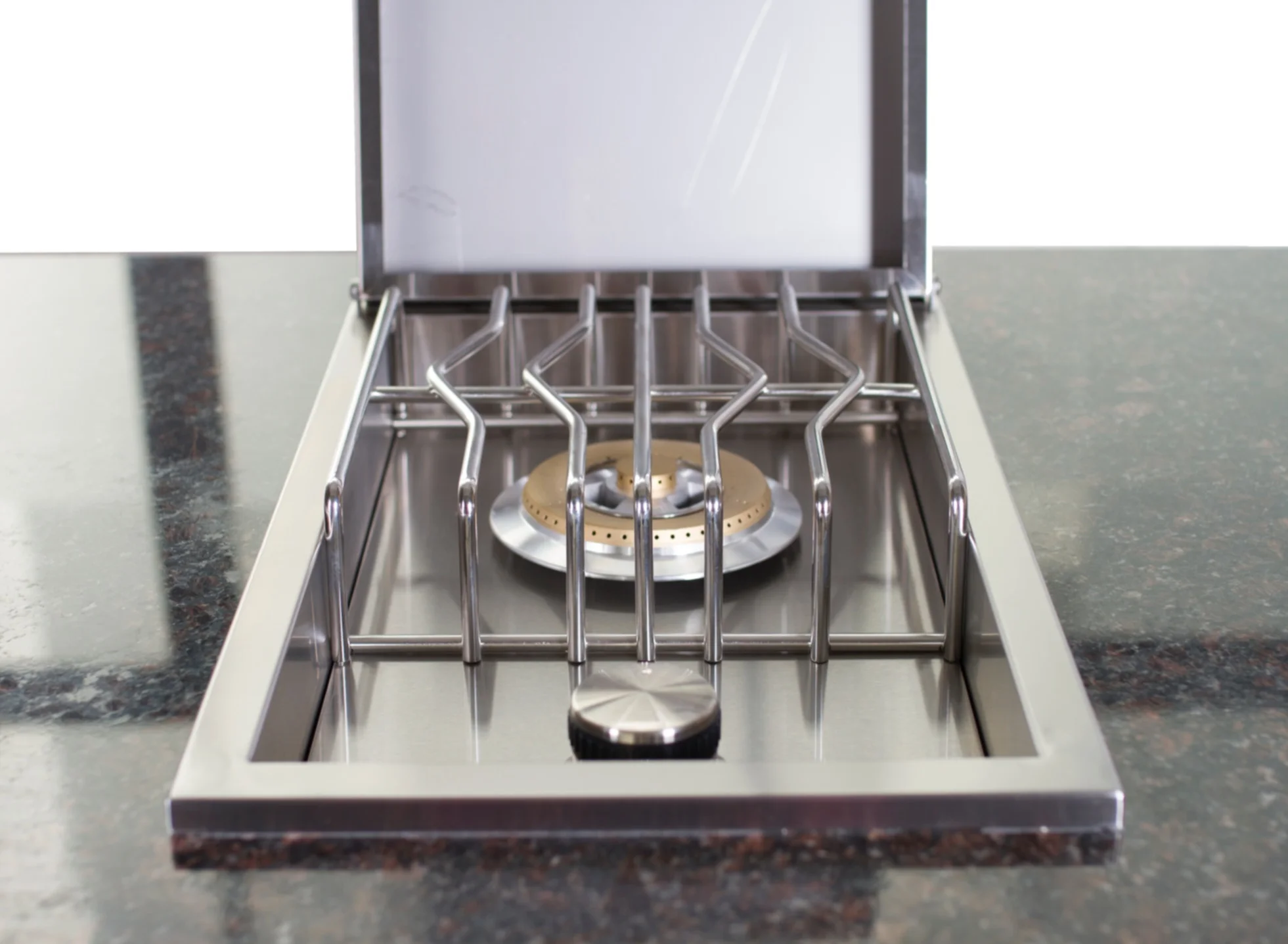 $281.39Original price was: $281.39.$263.81Current price is: $263.81.“Whistler Single Side Burner. Perfect for outdoor kitchen countertop gas grill setups,Constructed with tough 304-grade stainless steel to stand up to the elements.we believe that quality always comes first. The latest laser cutting technology allows us to create the perfect shape of our products. High gauge 304 stainless steel in grills and whole piece granite or marble on islands provide tremendous strength and durability for outdoor use.” DROP-IN SINGLE SIDE BURNER: Single side propane gas burner for Whistler outdoor kitchen countertop gas grill setups. PLENTY OF HEATING POWER: Outputs up to 12,000 BTUs of heat for plenty of cooking power. GREAT FOR COOKING SIDE DISHES: Cast brass burner is great for side dishes as you use your main grill for meats. RUGGED STAINLESS STEEL: Constructed with tough 304-grade stainless steel to stand up to the elements. MEASURE FOR A PRECISE FIT: Drops into countertops in a space measuring 13.9 x 21.85 inches.