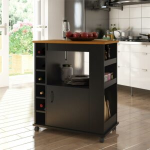 Williams Kitchen Island Microwave Cart with Rolling Casters, Black