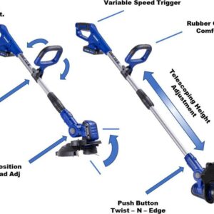 $103.19The Multi-Combo offers versatile functionality with a cutting width of 10”/12”, matching wheeled edger specs, featuring a 260 CFM & 81MPH Leaf Blower, 2*2Ah Battery & Charger. The Wheeled Edger design simplifies conversion to an edge trimmer. Achieve higher efficiency with Trimmer at 7500RPM and Blower at 12000RPM. The single-line auto feed system eliminates manual operation, and an adjustable auxiliary handle enhances convenience. Enjoy fast charging in 1.2 hours. The rotating head with 5 positions, 12° one gear, four gears, and a pivoting head for easy conversion to an edger make this tool adaptable. Additionally, the trimmer pole shaft extends by 13.8 inches for customizable length adjustments.