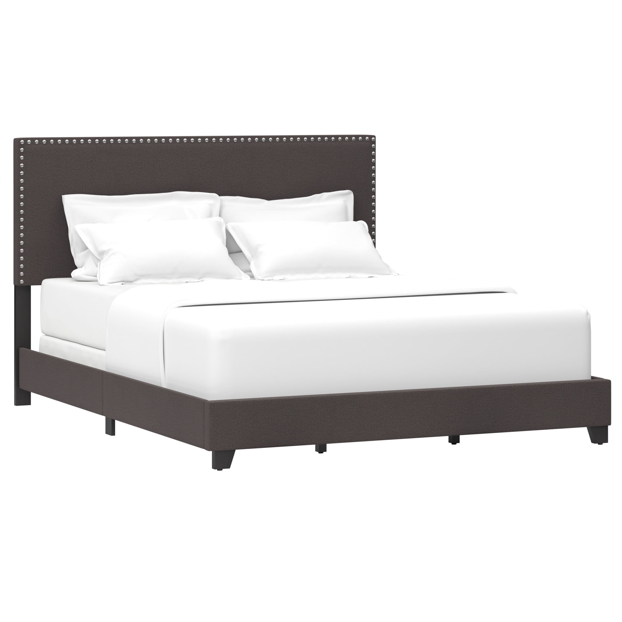 Willow Nailhead Trim Upholstered Queen Bed, Charcoal Fabric