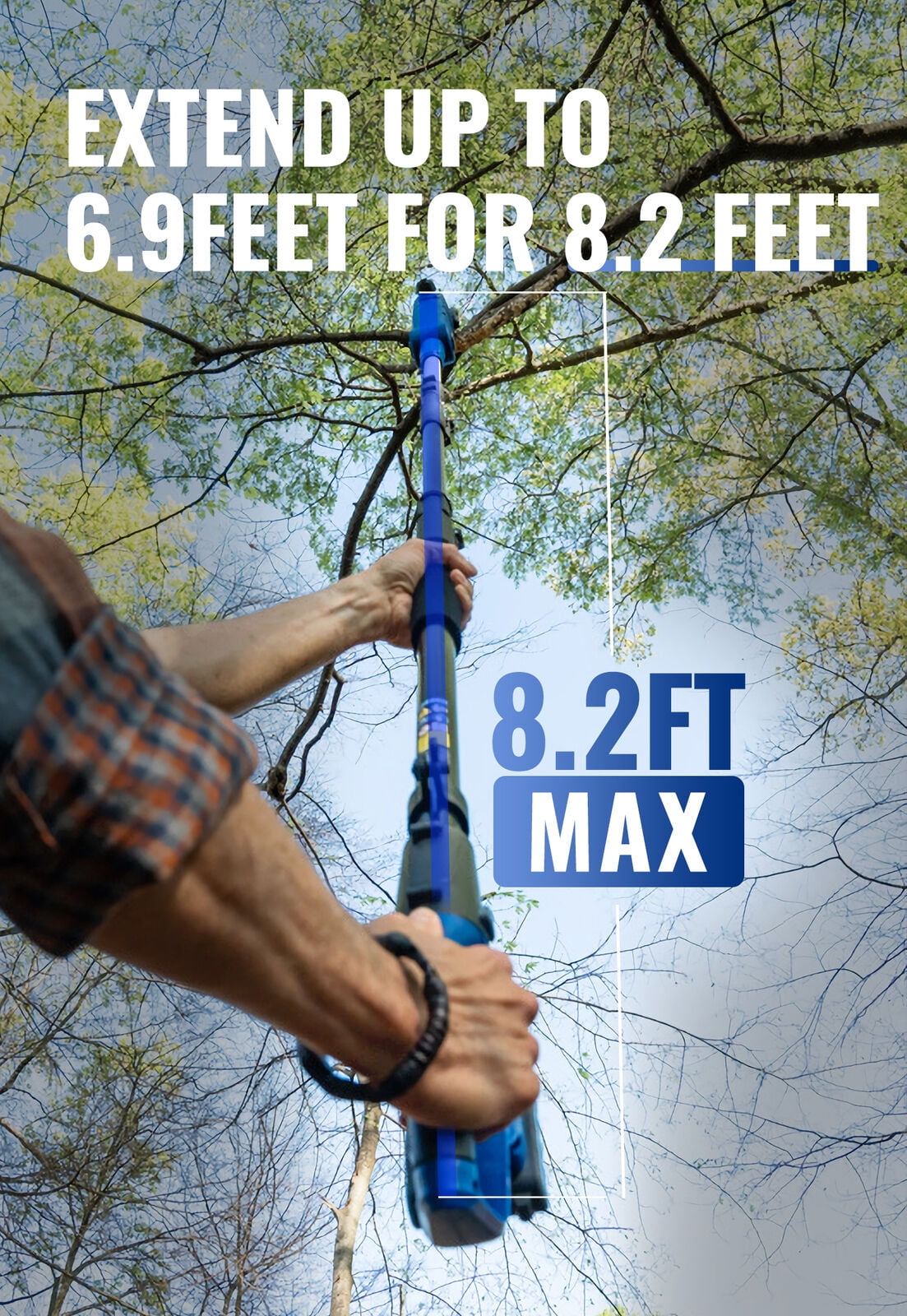 $103.19Original price was: $103.19.$85.14Current price is: $85.14.About Iteam: 【Adjustable Head】The pole chain saw features a adjustable head, which cuts at 0ºor 30º angles.It’s very easy to cut, cutting head fitting different angle cut. It provides more flexible reach in each cutting and will serve your needs whether it is yard clean-up or storm clean-up. 【Telescoping Pole】Telescopic split alum shafts for easy transportation and storage, it’s better to save space. It can extends up to 7 feet for 12 feet total reach. The material of the pole is glass fiber tube, light and hard, non-conductive, high mechanical strength, anti-aging, high temperature resistance, corrosion resistance. 【Auto Oiler】The Auto Oiler feature provides efficiency and performance, a clear-view fluid window to help you monitor oil levels, while tool-less chain tensioning allows for hassle-free adjustments. 【Double safety lock】:The tree trimmer pole saw has double safety lock .When you want to run the power pole saws, you need to push the buckle lock and handle at the same time to start the electric tree trimmer, which ensures your safety. 【Ergonomics Design & No Gasoline】 Single shoulder belt and rotate handle assistant are both easy to operation. It Compared with traditional gasoline tools, it is only 10 lbs lightweight. You won’t feel tired when operating.