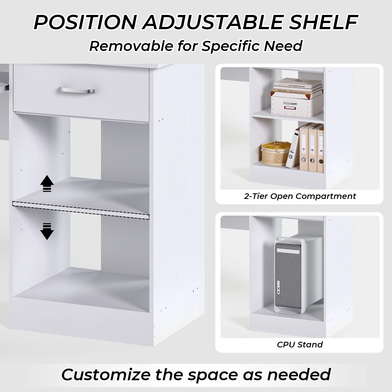 $120.40Original price was: $120.40.$94.59Current price is: $94.59.Introductions: If you need a desk for studying or working, this General Style Modern E1 15MM Chipboard Computer Desk is an ideal choice for you! Though it is in simple design, it could bring you enough convenience! With built-in drawer, you can store your important items inside. Divided compartments offer spacious room for your storage. Pure white appearance makes this computer desk look elegant. Its adopted E1 15MM chipboard ensures excellent strength and quality. So, you can trustingly buy it! Features: 1. Concise, fashionable and practical desk 2. Crafted from wood material and with special treatment 3. High strength, good harness and quality 4. Pure white appearance, thick modern style 5. Composed of drawer and shelf design 6. Roomy space for storage 7. Good for studying and working Specifications: 1. Material: E1 15MM Chipboard 2. Color: White 3. Dimensions: (43.3 x 19.69 x 37.4)” / (110 x 50 x 95)cm (L x W x H) 4. Weight: 66.14 lbs / 30 kg Package Includes: 1 x Computer Desk