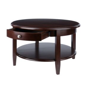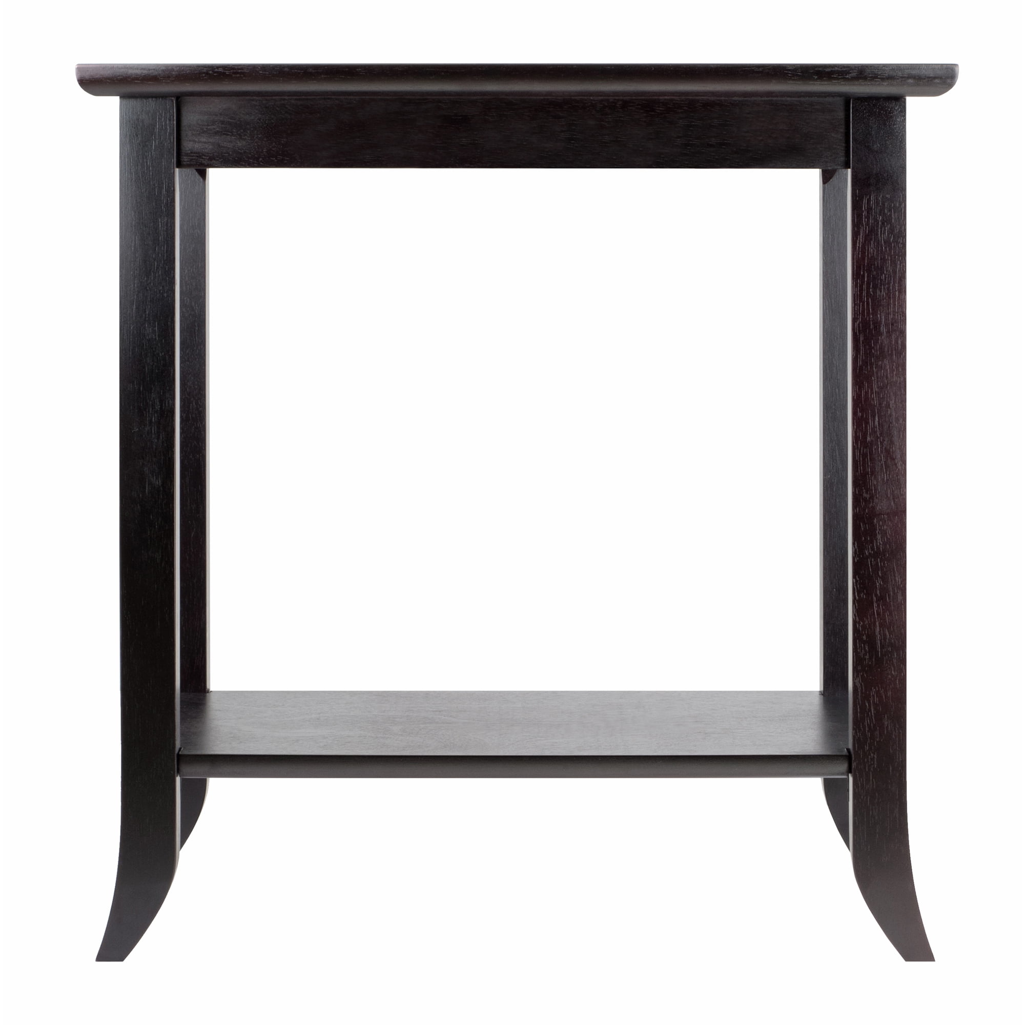 $76.47Simplify a living space while adding style and class with the Winsome Wood Genoa collection. Uniquely defined by its style of slightly flared legs and glass top centered in the middle of the table, all while still being functional and versatile. A lower shelf stores books, collectibles, or keeps your personal electronic devices there when you need them. The rich espresso finish will look right at home in any setting, from transitional to contemporary. Made from solid and composite wood with tempered glass. Conveniently packed and shipped in 1 box that includes the hardware needed for assembly.