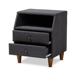 Baxton Studio Claverie Mid-Century Modern Charcoal Fabric Upholstered 2-Drawer Wood Nightstand