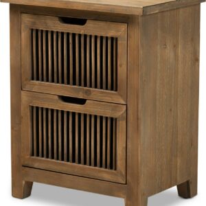 Baxton Studio Clement Rustic Transitional Medium Oak Finished 2-Drawer Wood Spindle End Table