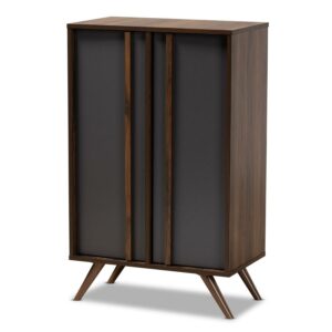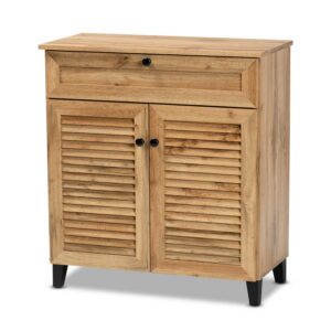 Baxton Studio Coolidge Modern and Contemporary Oak Brown Finished Wood 2-Door Shoe Storage Cabinet