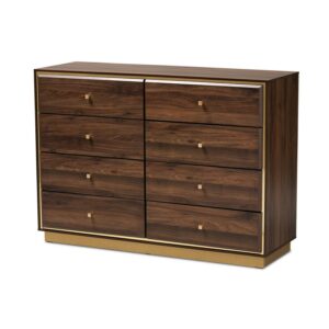 Baxton Studio Cormac Modern and Contemporary Walnut Brown Finished Wood and Gold Metal 8-Drawer Dresser
