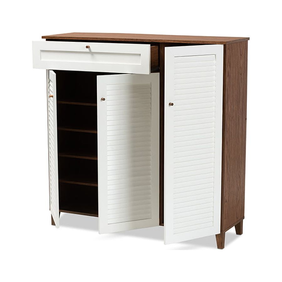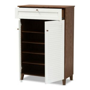 Baxton Studio Coolidge Modern and Contemporary White and Walnut Finished 5-Shelf Wood Shoe Storage Cabinet with Drawer