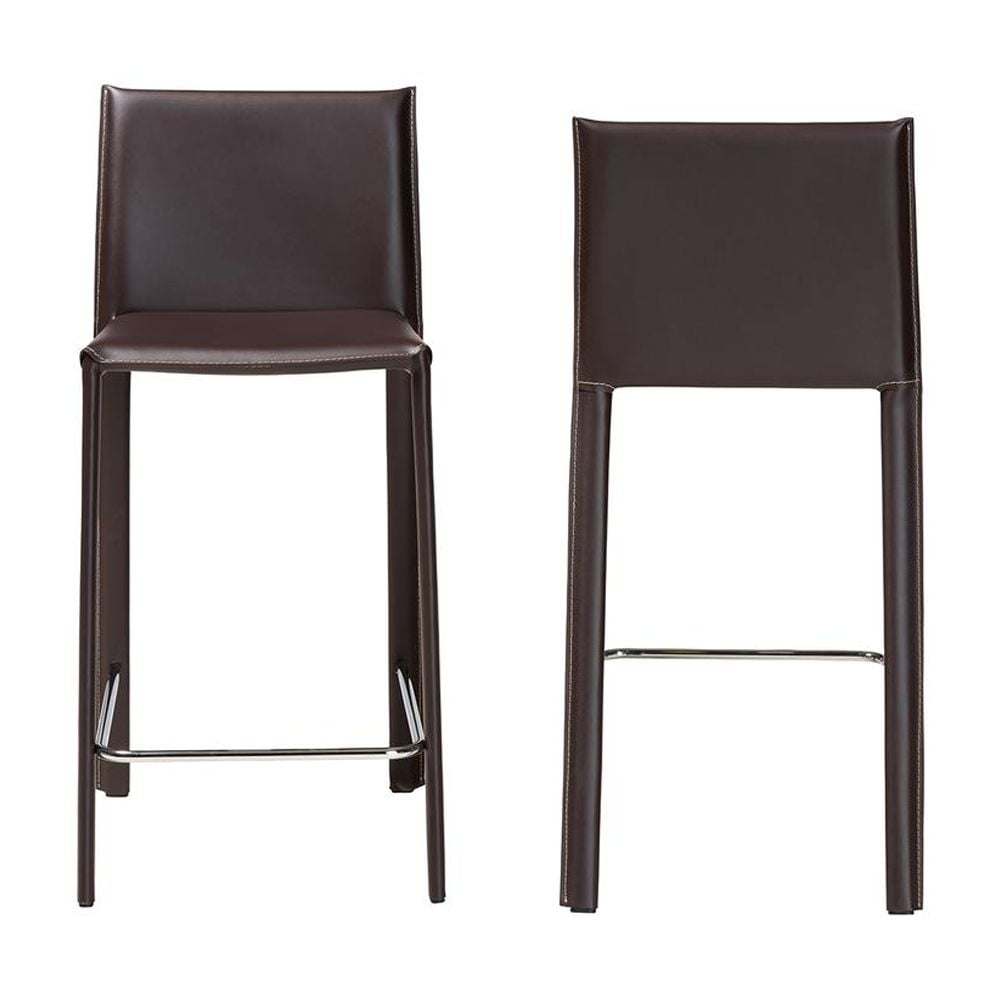 Baxton Studio Crawford Brown Leather 2-Piece Counter Height Stool Set