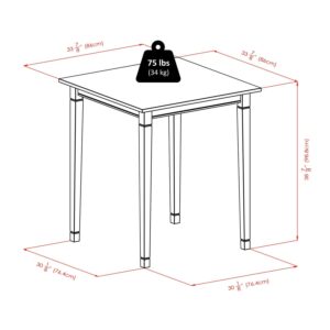 $286.79Original price was: $286.79.$241.87Current price is: $241.87.Enhance the look of your casual dining are with this sleek, comtemporary 3-Pc Kiingsgate Dining Table Set. Compact yet practical, this table offers ample space for dining or entertaining in any area of your home. Table dimensions is 29.53″W x 29.53″D x 29.13″H. The set comes with 4 Hamitlon Ladder Back Chairs stands at 16.54″W x 18.63″D x 34.70″H. Seat height from ground is 18″ and Seat back height is 17.06″. Seat dimension is 16.54″W x 16.46″D. Table and Chairs are made from real wood in warm walnut finish. Table and Chairs required assembly.