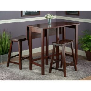 Winsome Wood Lynnwood 3-Pc High Drop Leaf Dining Table with 2 Square Leg Counter Stools, Walnut