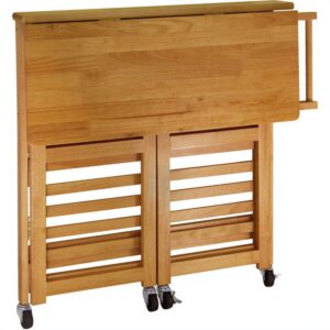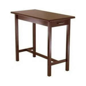 $214.47Original price was: $214.47.$182.89Current price is: $182.89.Take home a blend of grace and simplicity with the Winsome Wood Perrone High Table Set, an indispensable addition to any home. Offering exceptional versatility and making this an excellent space saving choice for a studio apartment or small spaces where a multipurpose table is ideal. Needing more surface space, this unique design offers the utmost in stability for expanding the table size. Pull out the apron, and the legs support the drop leaf when open, slide the apron back when the drop leaf is folded. With the leaf extended, the table seats four comfortably but for daily living keep the drop leaf down and conserve valuable floor space. A center drawer with a satin nickel finish knob keeps pens, pads, and other smaller items within easy reach. This table set is paired with two classically designed stools that are a perfect complement to the table. The 24″ counter stools have a unique saddle-shaped seat, which is extra-long, rectangular in shape, and curved in the middle for true comfort. Featuring a crossbar on all four sides, for stability and comfort making these stools not only attractive but also very functional. Enjoy this set for casual dining or use the table as a console or convenient place to work on your laptop. Constructed of sturdy solid wood for long lasting durability and finished in a rich walnut, this set can be incorporated effortlessly into nearly any existing decor. Ships in 3 boxes that include the hardware necessary for assembling. Replacement part request can be submitted directly to the manufacturer within 60 days from date of purchase. Overall table dimensions: 29.1″H x 40″W x 34.8″D (with leaf extended) 29.1″H x 40″W x 21.6″D (with leaf closed) – leaf dimension is 40″W x 14″D Inside drawer dimensions: 12.1″W x 8.9″D x 2″H Clearance underneath table (Front): 24.8″H x 34.1″W Clearance underneath table (Side): 24.8″H x 14.2″W Stool assembled size is 17.4″W x 14.47″D x 24″H Seat Dimension is 17.5″W x 9″D – Static Weight limit 220 Lbs. Assembly required Ships in 3 boxes