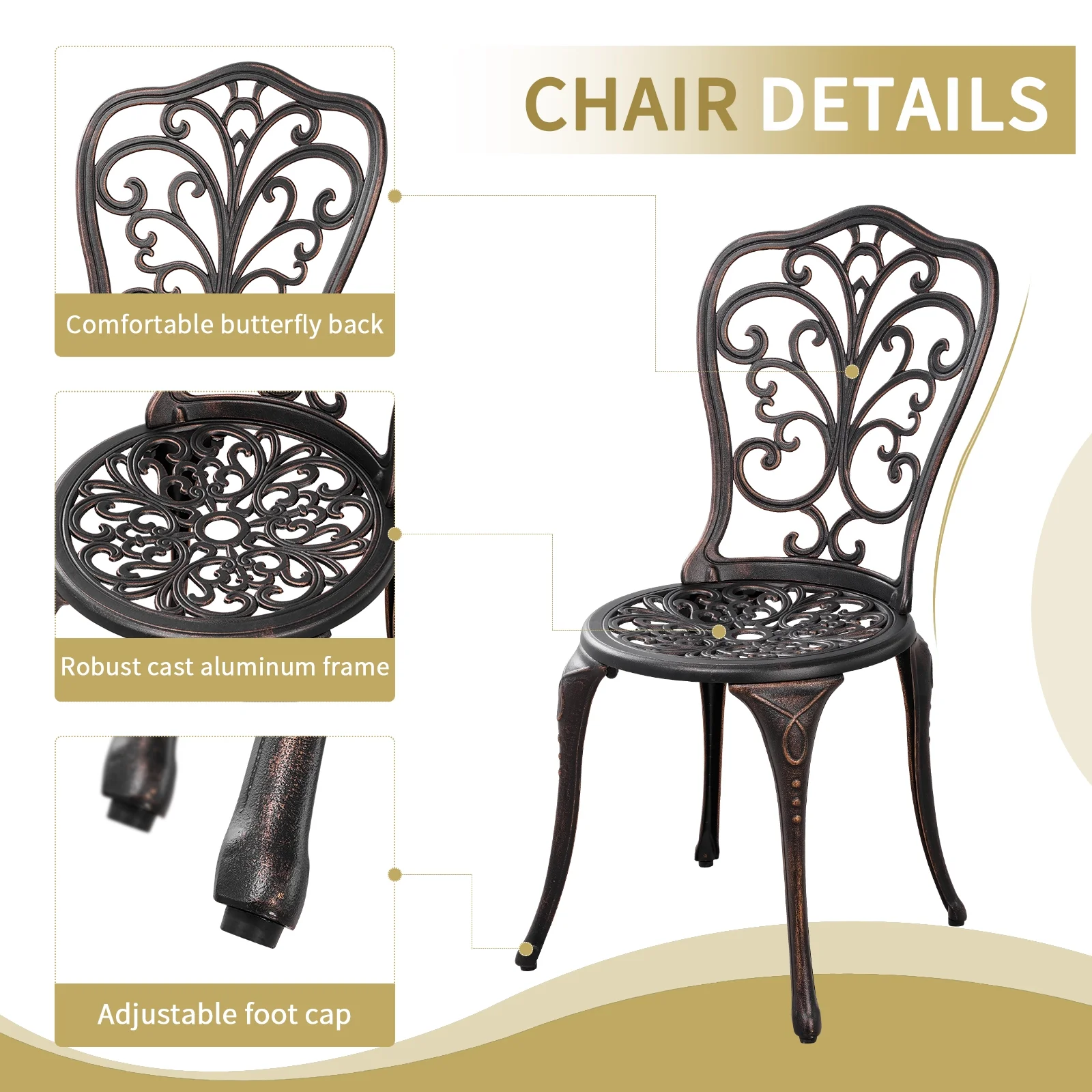 Withniture 3-Piece Cast Aluminum Outdoor Patio Bistro Furniture Set, Bronze