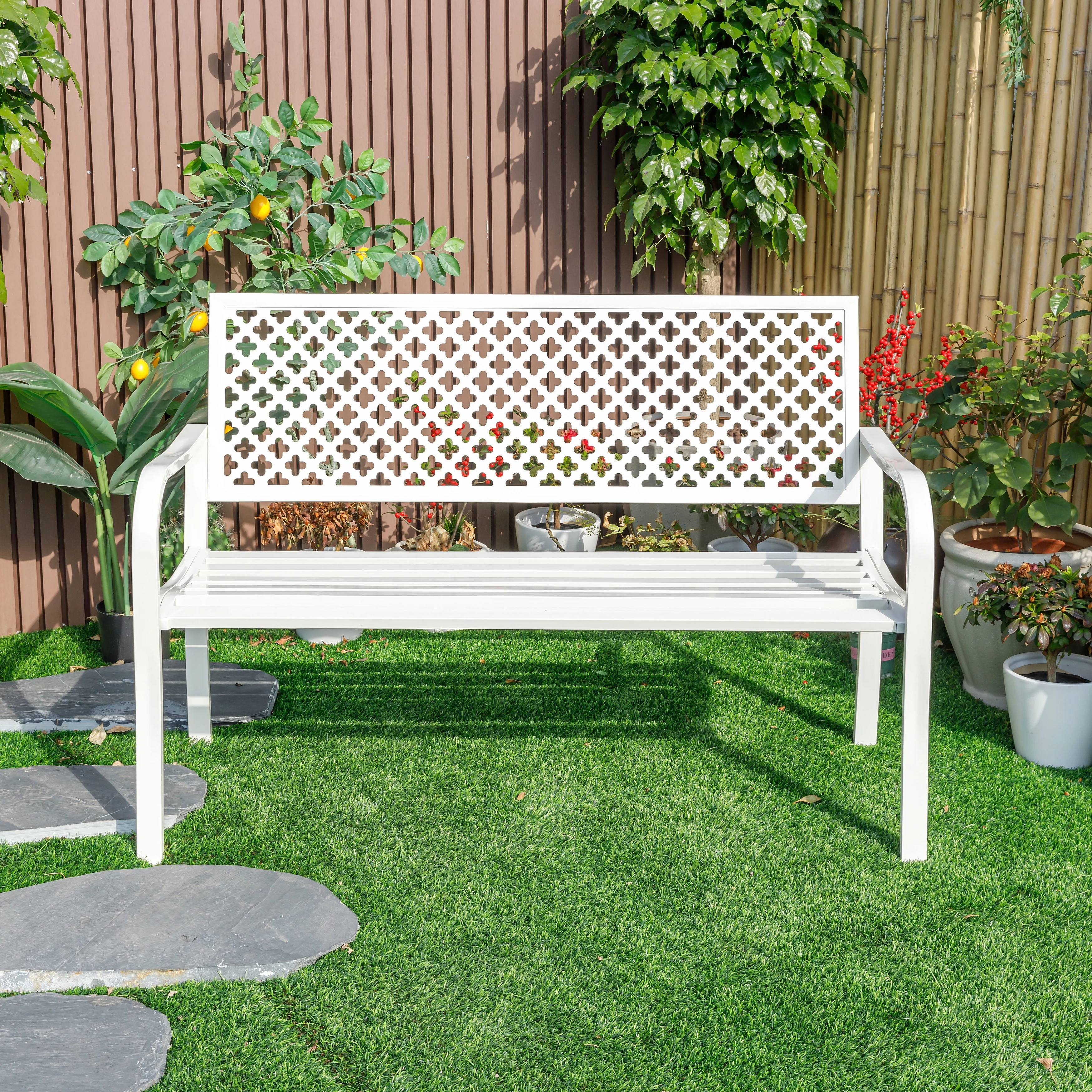 Winter Wonderland- White All-Steel Garden Bench for Relaxation