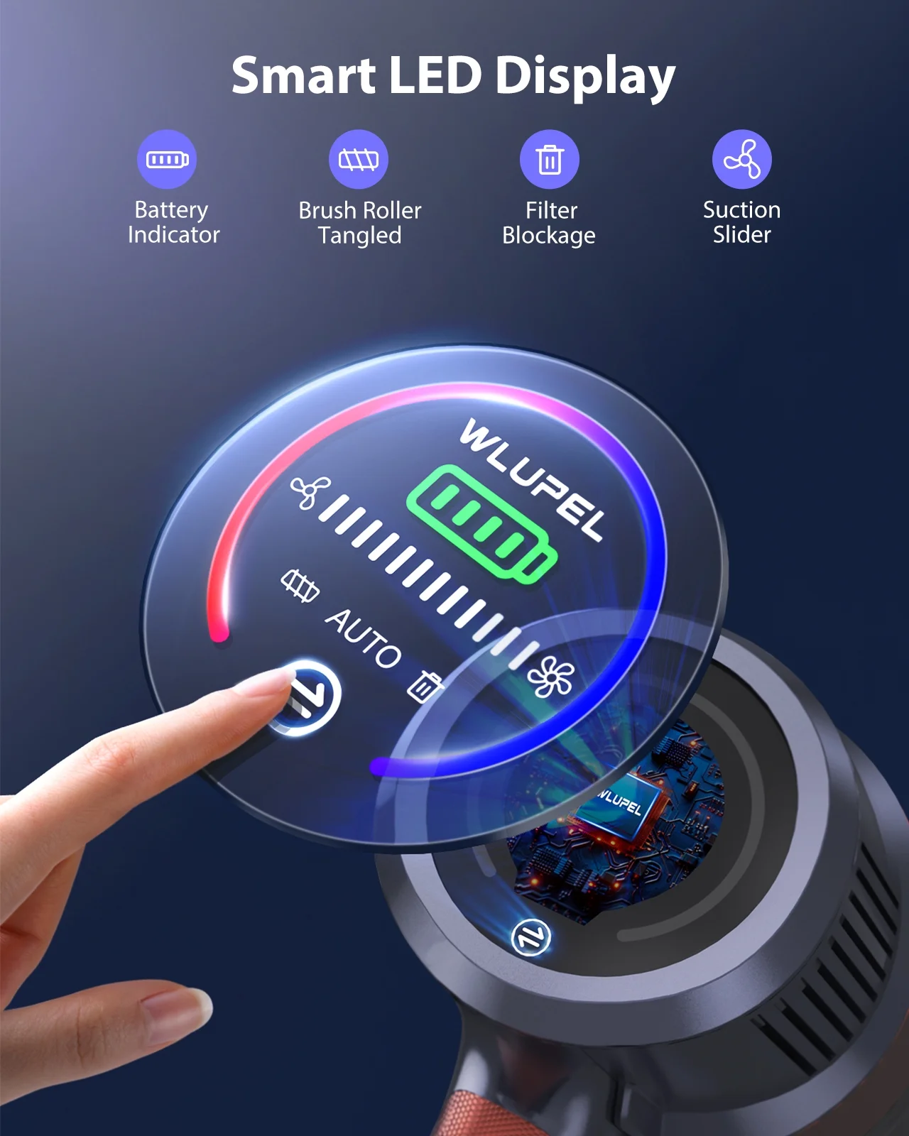 WLUPEL 450W High-Power Motor 38KPA Lightweight Powerful Cordless Vacuum with 1.5L Cup for All Floor