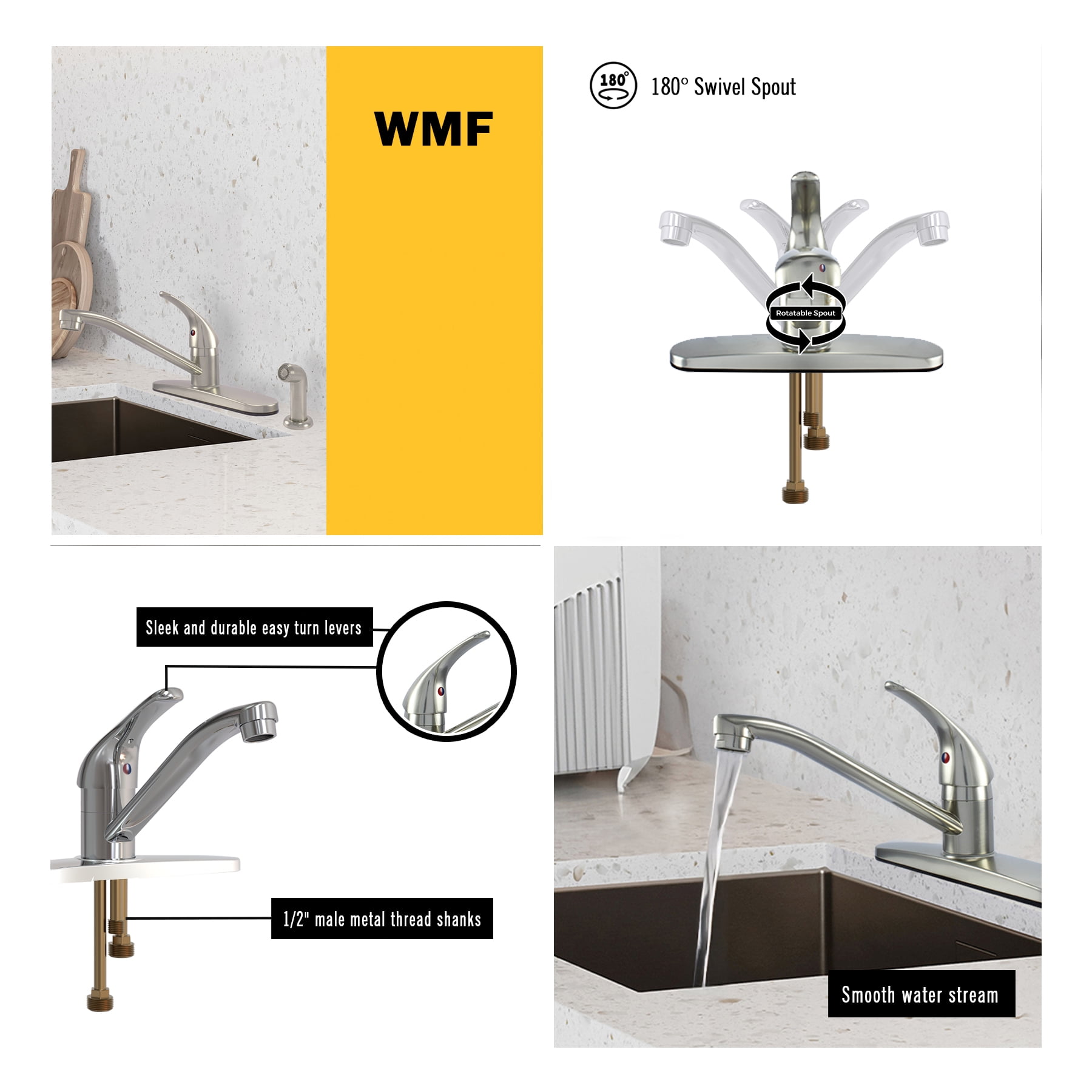 WMF-8347Z-CP – Hybrid Metal Deck Single Handle Kitchen Sink Faucet, Ceramic Cartridge, less Spray
