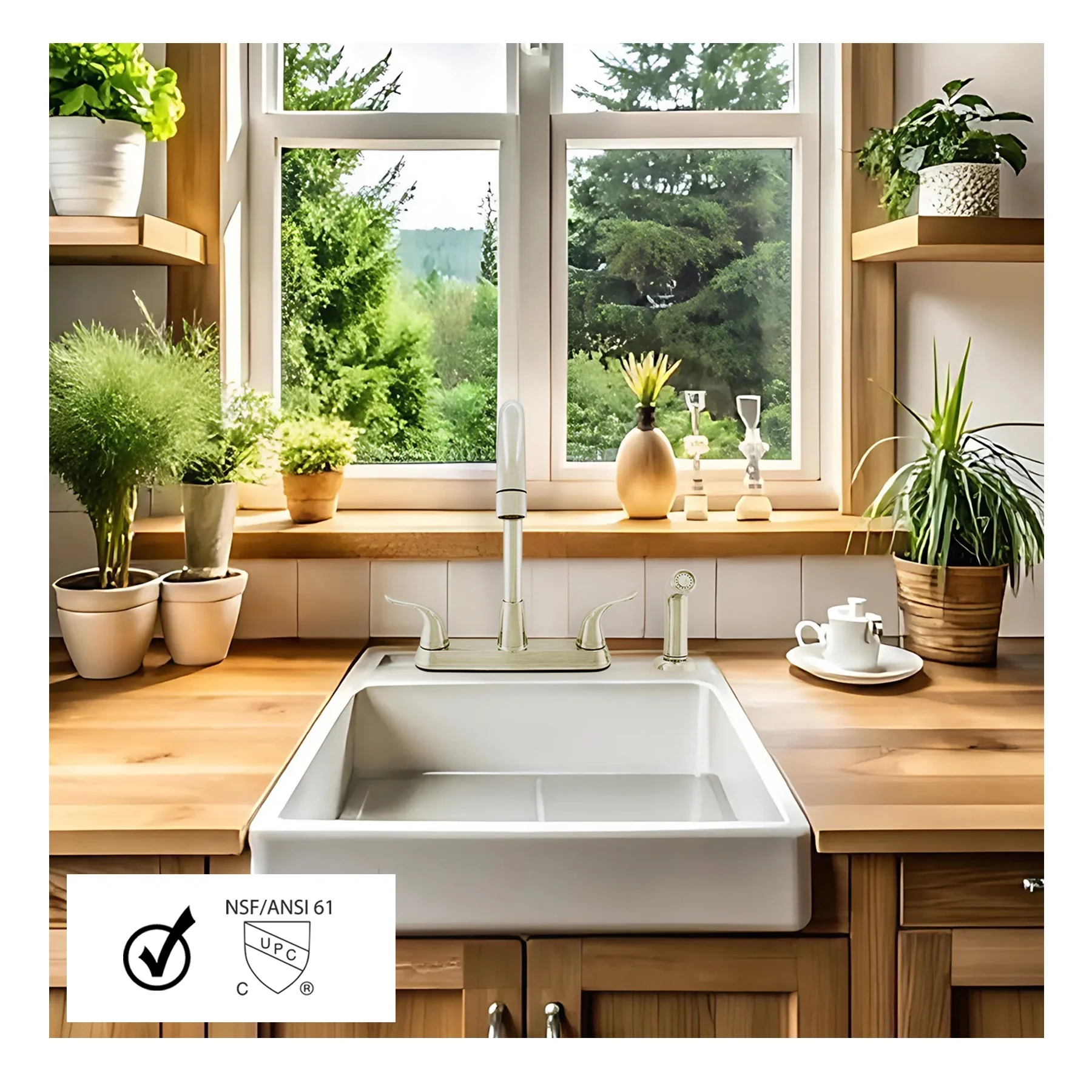 $42.13Original price was: $42.13.$35.90Current price is: $35.90.FEATURES – This faucet boasts a modern exterior with side sprayer to making daily cleaning tasks easier. Enjoy splashless washing due to the generous aerated stream. DESIGN – The modern spout styling of this faucet blends with all decors. This unit is made with premium grade lightweight synthetic waterways and sturdy construction. QUALITY – This dual lever comes with high quality washerless cartridges,which provides a smooth turning action and prevents dripping. This model is lead-free certified. INSTALLATIONS – If you are concerned about adequate space on your sink top to accommodate this faucet, dont’t worry! It was made with a recreational vehicle’s space in mind. SPECIFICATIONS – Works with any 4-holes sink opening with side sprayer, center to center installation width is 8″. Flow rate is 1.8 GPM. UPC and CUPC Certified.
