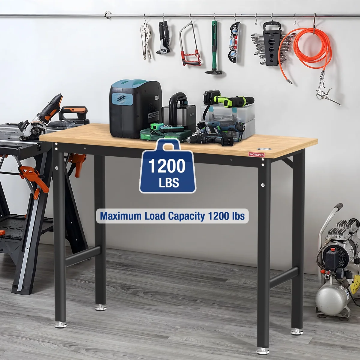 WORKPRO 48″x20″ Garage Workbench with Leveling Foot,1200 LBS Load Capacity Work Benches for Garage, Workshop, Office, Home, Woodworking