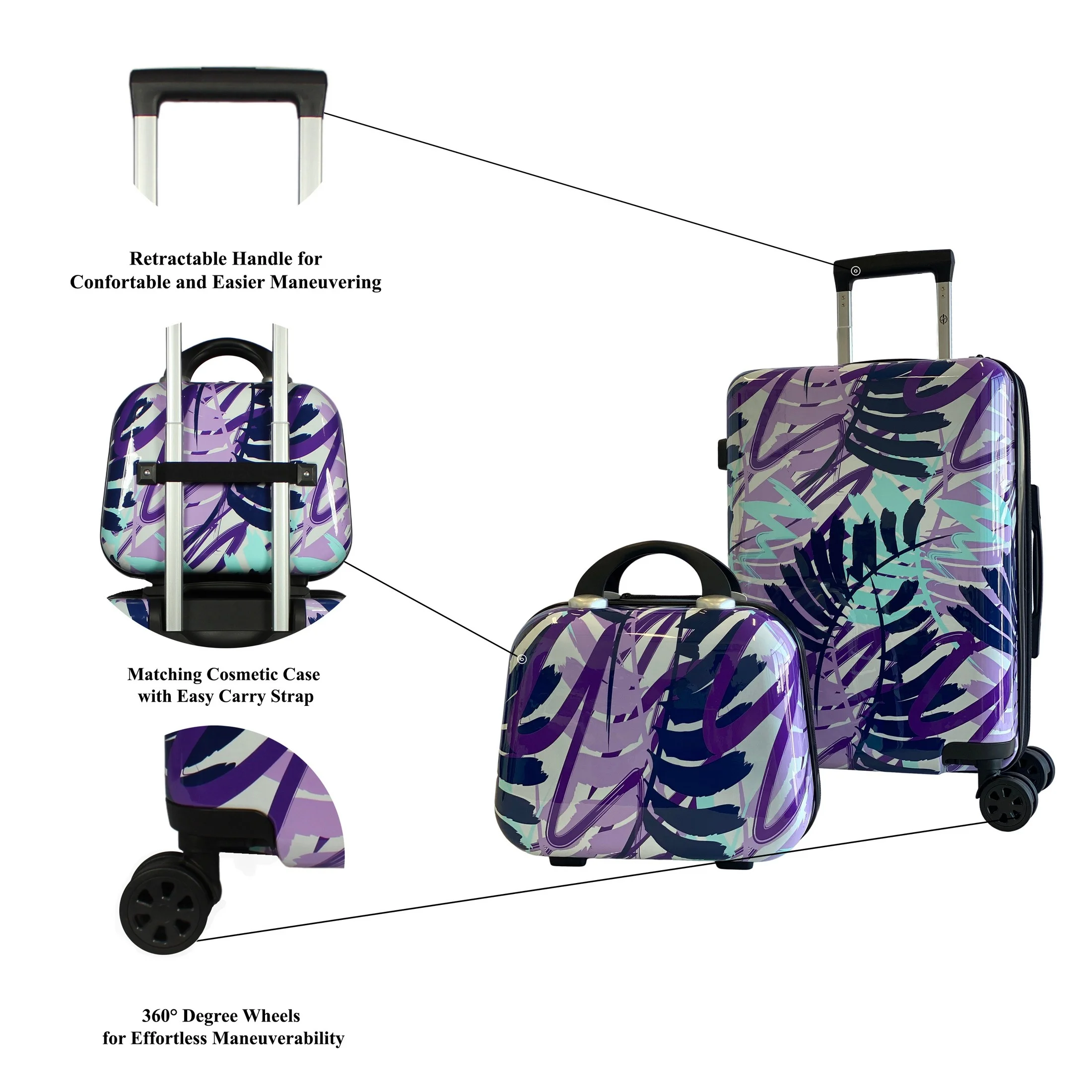 $94.59Original price was: $94.59.$82.55Current price is: $82.55.Super-stylish and ready for your next adventure, this printed 20″ lightweight hardside spinner carry-on and matching cosmetic case is the perfect travel companion. The fully lined interior features a zipper divider and compression straps. The impact-resistant Polycarbonate shell sits confidently on eight(8) spinner wheels that have been matched with a retractable telescopic handle to offer a maximum travel experience.