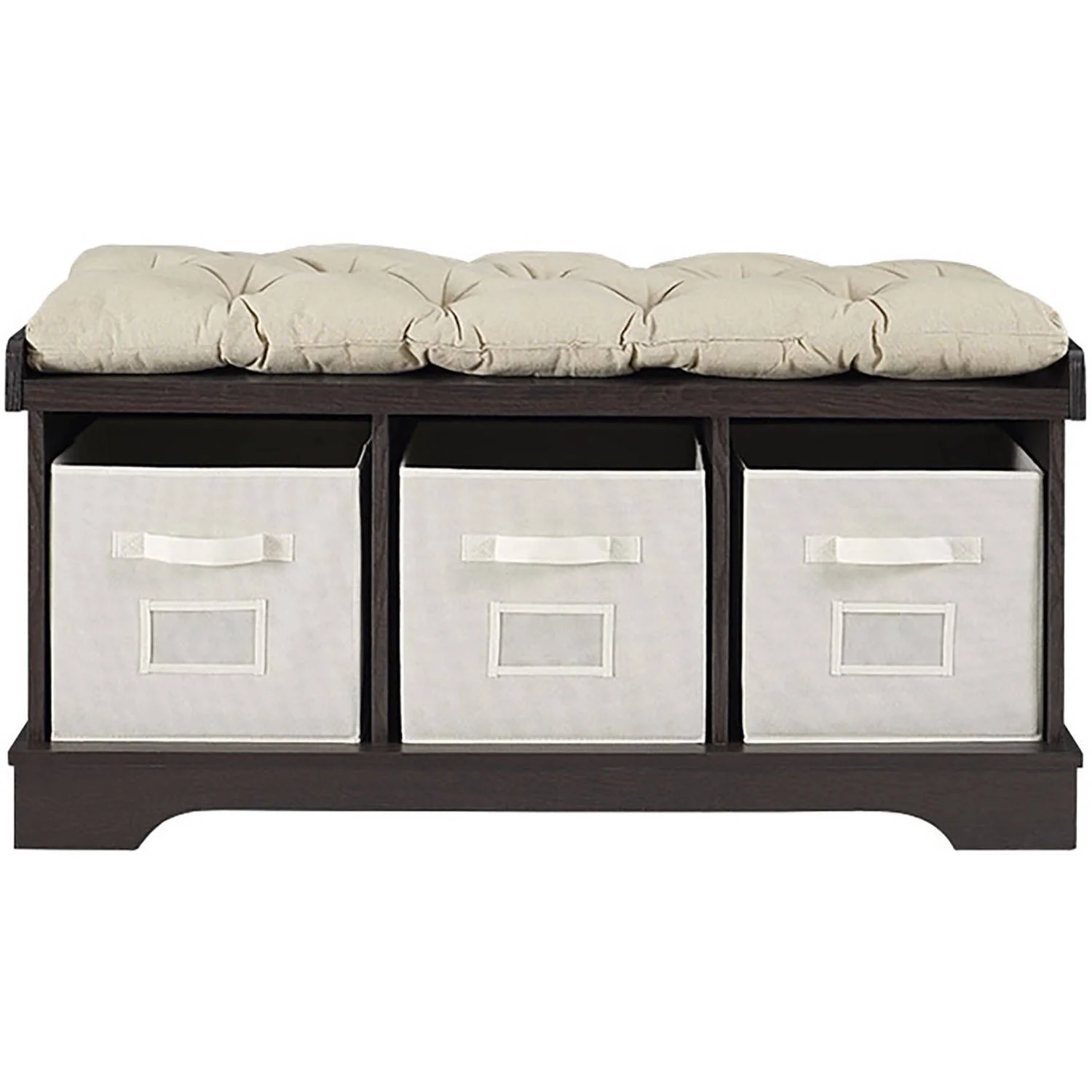 $131.51The Woven Paths Storage & Tufted Bench features extra storage space for your entryway or mudroom. This bench includes three storage bins that fit conveniently into each cubby space, so you can easily organize your bags, accessories, and shoes, or your child’s toys. With a place to put a label on the front of every bin, you’ll be able to specify what should go in each, whether that’s magazines or school books. The bench’s transitional and modern farmhouse style will look good in any home, and the thick, tufted cotton cushion that sits on top of the bench makes for a comfortable seat when needed. Durably constructed from high-grade MDF, The Woven Paths Storage & Tufted Bench is a reliable piece that will grace your home for years to come. The Woven Paths collection blends rustic farmhouse style with bohemian accents perfect for any season. This collection makes it easy and affordable to brighten up any room with cozy, vibrant, quality pieces.