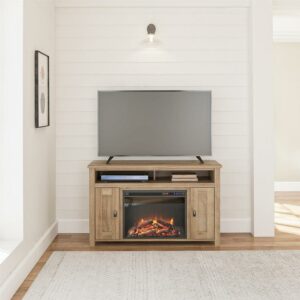 Woven Paths Scandi Farmhouse Electric Fireplace TV Console for TVs up to 50″, Natural