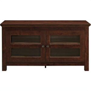 $323.26Your guests will love the old rustic look of the Ameriwood Home Farmington TV Stand. This TV Stand holds up to a 60″ flat panel TV with a maximum weight of 135 lbs. Inspired by the weathered look of an old barn, this TV stand is full of character and brings a unique style element to your space. Made from laminated MDF and particleboard, the textured rustic brown with gray undertones finish gives this TV stand its worn appearance and feel, but don’t worry – this incredible piece of furniture is designed to last. Take advantage of various open compartments and closed storage to keep all of your media essentials like your DVD player, cable box and video game systems organized. The sliding doors can be placed in the center or on the ends – however you like it best! The Farmington TV Stand comes in 2 boxes, ships flat to your door and requires assembly upon opening. Two adults recommended for assembly. The top shelf holds up to 135 lbs and each shelf and drawer below can hold up to 25 lbs. After assembly, the TV Stand measures to be 32″H x 59.61″W x 19.69″D.