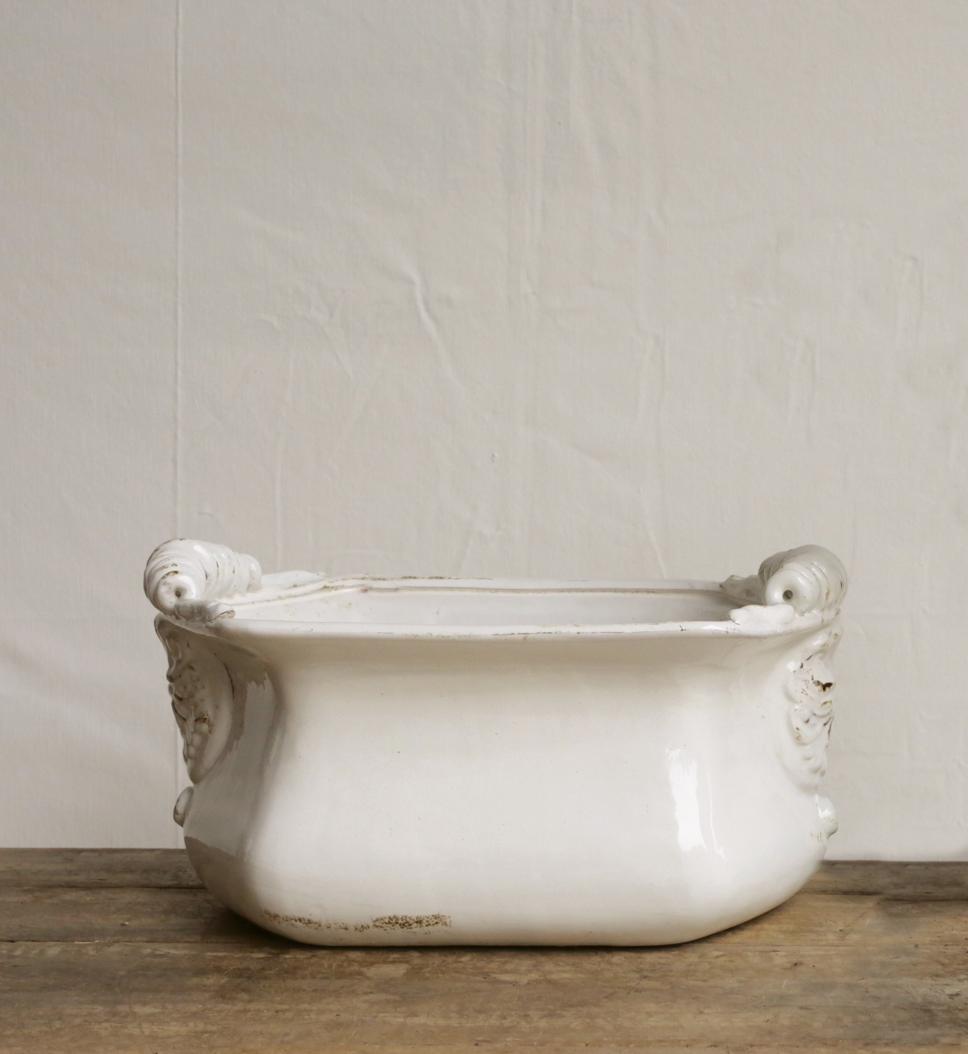 $75.60This beautiful pot is one of those classic designs that draws everyone’s attention. It has a distressed white finish. The beautiful decoration on the two ends is incorporated with the raised handles.