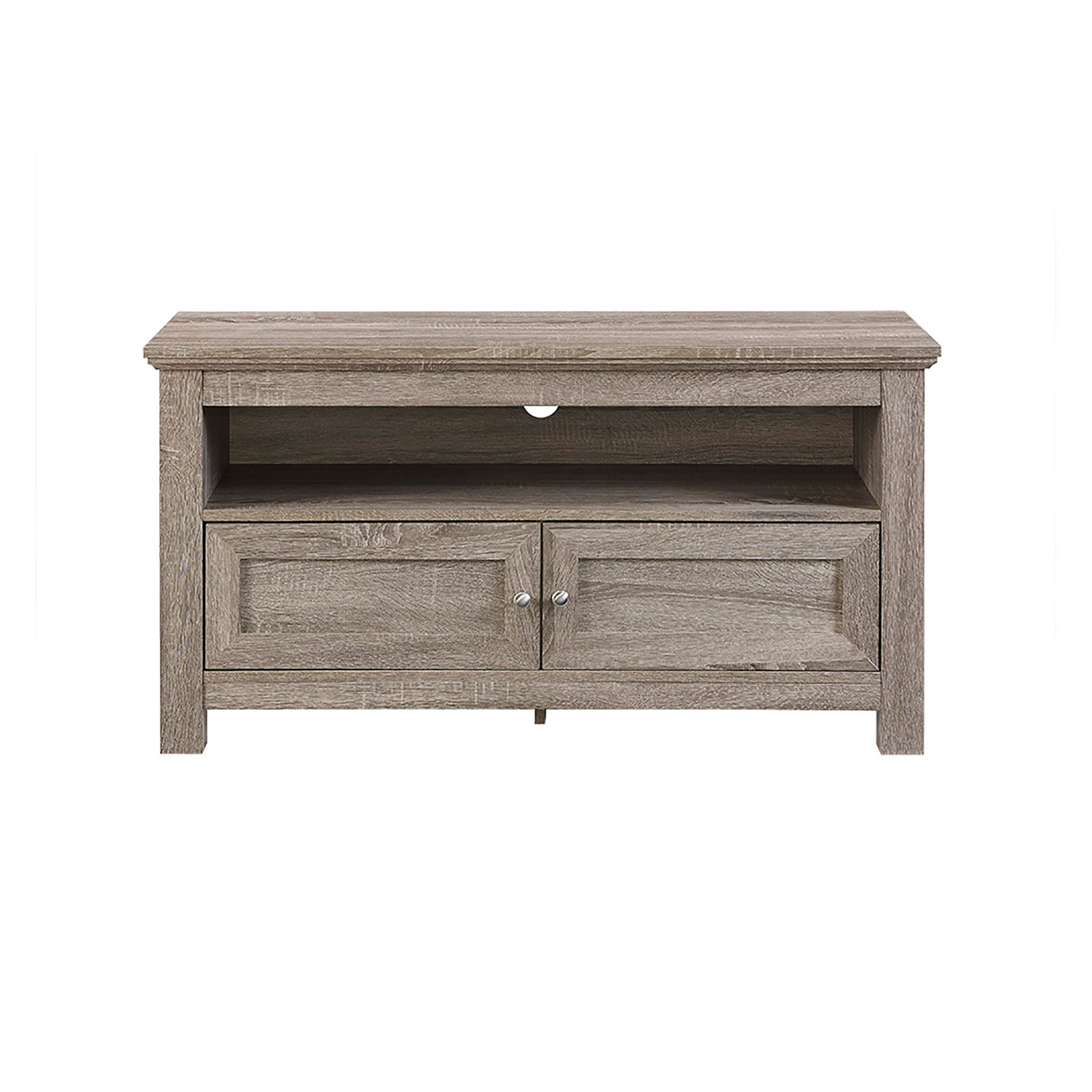 Woven Paths Transitional Corner TV Stand for TVs up to 65″, Reclaimed Barnwood