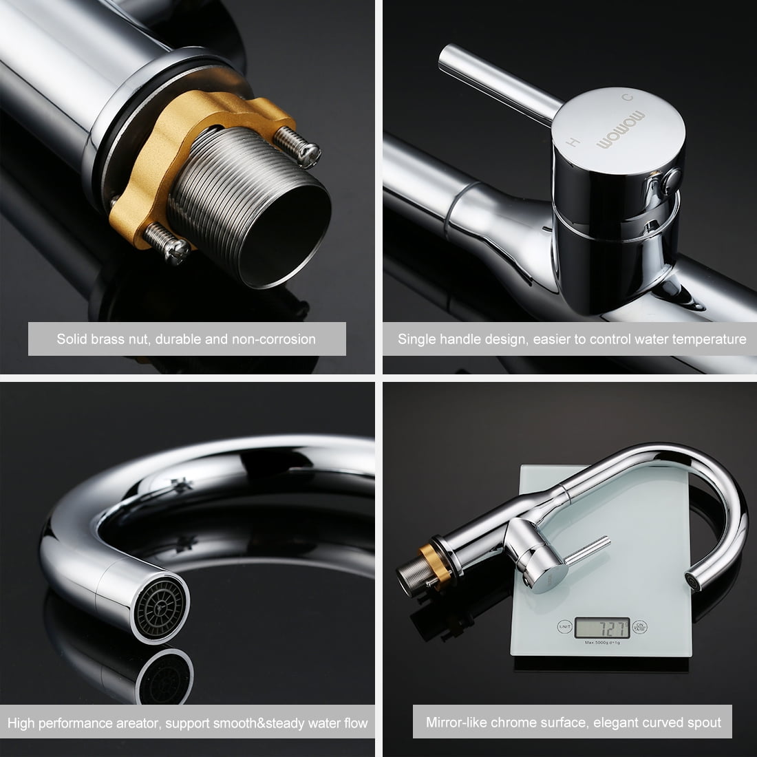 $68.79Original price was: $68.79.$51.59Current price is: $51.59.WOWOW Single hole bar faucet with extra high spout provides steady water flow in an elegant shape, no more splash, making the washing more efficient with enough height, imitating the natural water movement, especial fit for bar, restaurant, or home bar. The package includes complete accessories, easy installation with the instruction. The control handle is located on the side and offers smooth and easy control of the water volume and temperature, comfortable to hold and operate. You can operate it with a single handle, to control the flow or temperature.