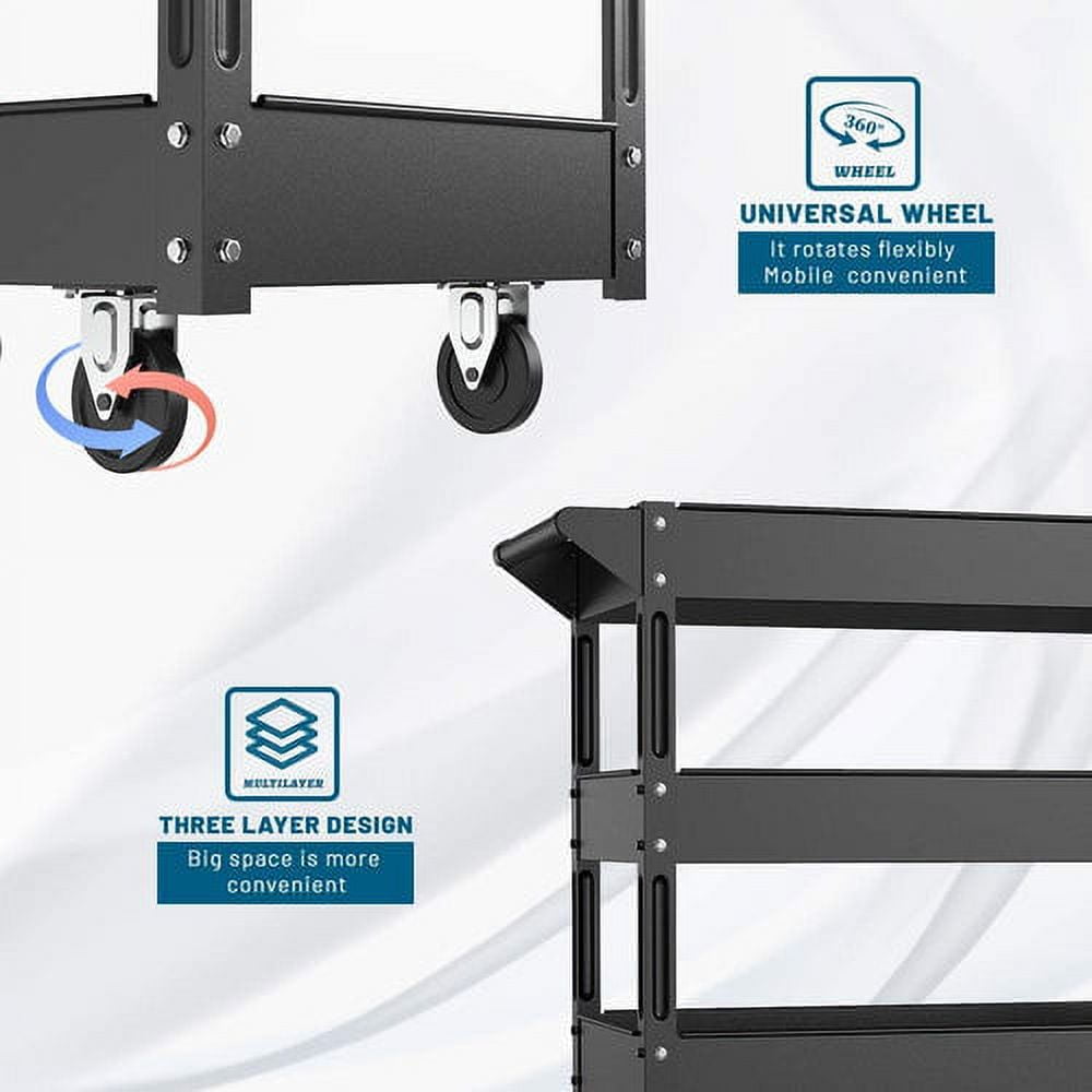 XERATH Steel 3-Shelf Multipurpose Utility/Supply/Service/Tool Cart Great for Garage, Warehouse, Cleaning, Office & Workplace [Assembled Size: 30 (L) x 16 (W) x 30.5 (H) inch]