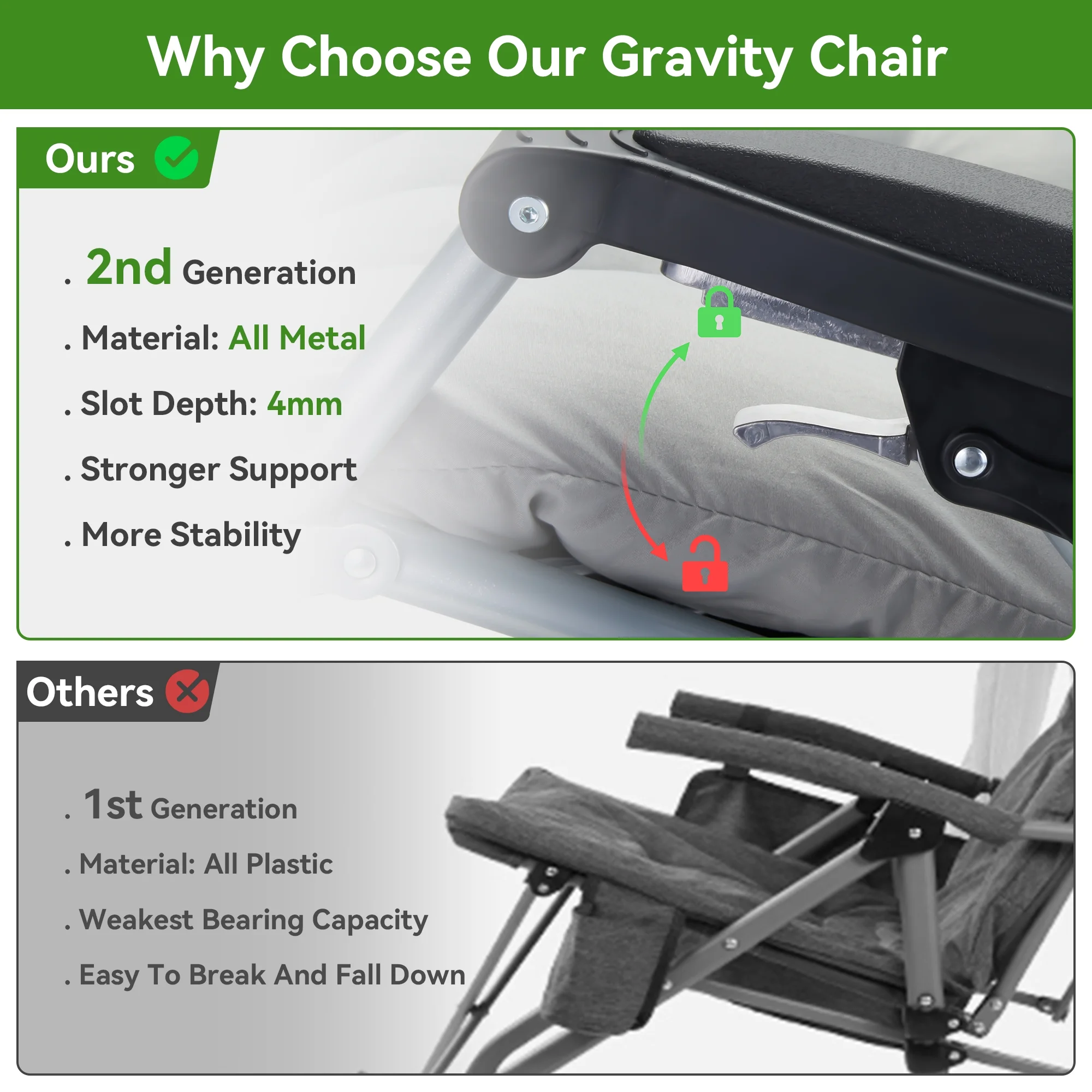$169.41Original price was: $169.41.$85.13Current price is: $85.13.VECUKTY brings you a convenient life!VECUKTY Reclining Lounge Chair with Removable Cushion & Tray 💺💺[OVERSIZED XXL SIZE] Color:Black/Gray Set up size is 33″W x 31″D x 45″H Folding size is 33″W x 37″L x 5.7″H Cushion Pad is 70″L x 33″W CHAIR WEIGHT is 23.8lbs The WEIGHT CAPACITY is 550lbs 💺💺[LONG-LASTING & DURABLE USE] The zero gravity chair can take 500-560 pounds of weight. This outdoor patio reclining chair is extra durable and will last you a lifetime. This professional outdoor padded lounge chair is built with premium quality materials, which provide increased durability and resistance. 💺💺[COMFORTABLE & ERGONOMIC DESIGN] The zero gravity chair is designed to satisfy your ultimate comfort. The armrest of outdoor padded lounge chair is thick and contoured. It will serve you whether sitting or lying, outdoor and indoor. Our folding lounge chair comes with a thick and soft pad, and the ergonomic design of this outdoor recliner chair can relieve pressure on your spine, improve circulation, and reduce muscle tension. 💺💺[REMOVABLE SOFT PAD] Intuitive design features that this outdoor recliner chair can be used by anybody. You can remove the soft cushion from outdoor patio reclining chair to promote better airflow durin.Whether it’s summer or winter, you deserve it. 💺💺[ADJUSTABLE & ZERO-GRAVITY CHAIR] Our folding lounge chair has an adjustable design that can be adjusted from 110 to 170-degree angle. This amazing feature of outdoor recliner chair helps you select the optimal angle that brings you to a comfortable, relaxing position. Simply push the clip to unlock the position, and pull the clip back to secure it at your desired position. 💺💺[WIDELY APPLICATION] Whether relaxing by reading a book or getting a quick break, this comfortable outdoor patio reclining chair is your one of the best choice. This padded lounge chair can be used indoors, for outdoor activities, such as family gatherings, BBQs or beach day, or at the office, lawn and yard.